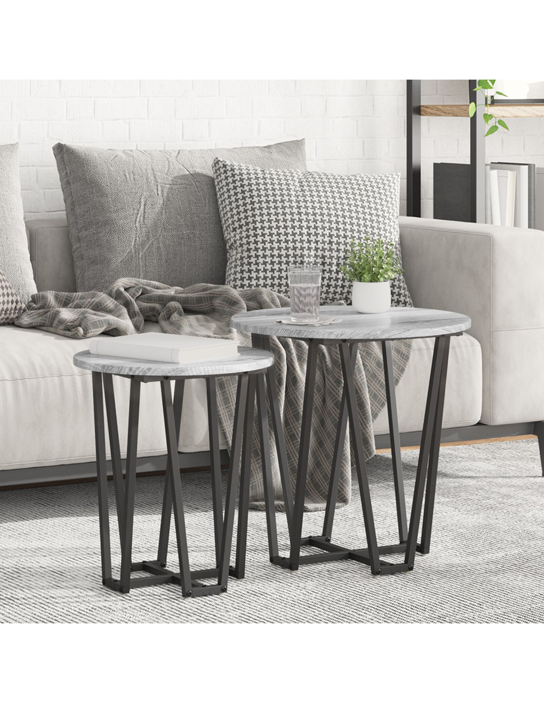 - Design funzionale I tavoli rotondi si incastrano alla perfezione, offrendo flessibilità nell'arrangiamento. Usali separatamente per lampade o insieme come pezzo centrale, adattandosi a ogni necessità.
