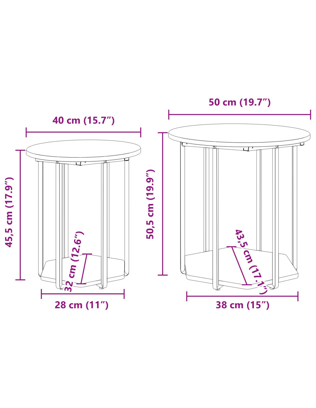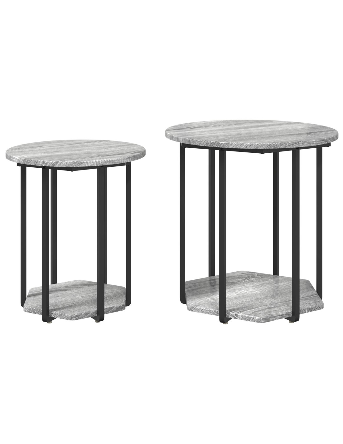 Questo set di tavoli in legno ingegnerizzato aggiunge un tocco di fascino industriale al tuo spazio. Perfetti per loft o interni moderni, questi tavoli hanno un look rustico che unisce materiali naturali a funzionalità. Il design flessibile li rende ideali accanto a divani o sedie, offrendo una superficie pratica per lampade, drink o decorazioni.