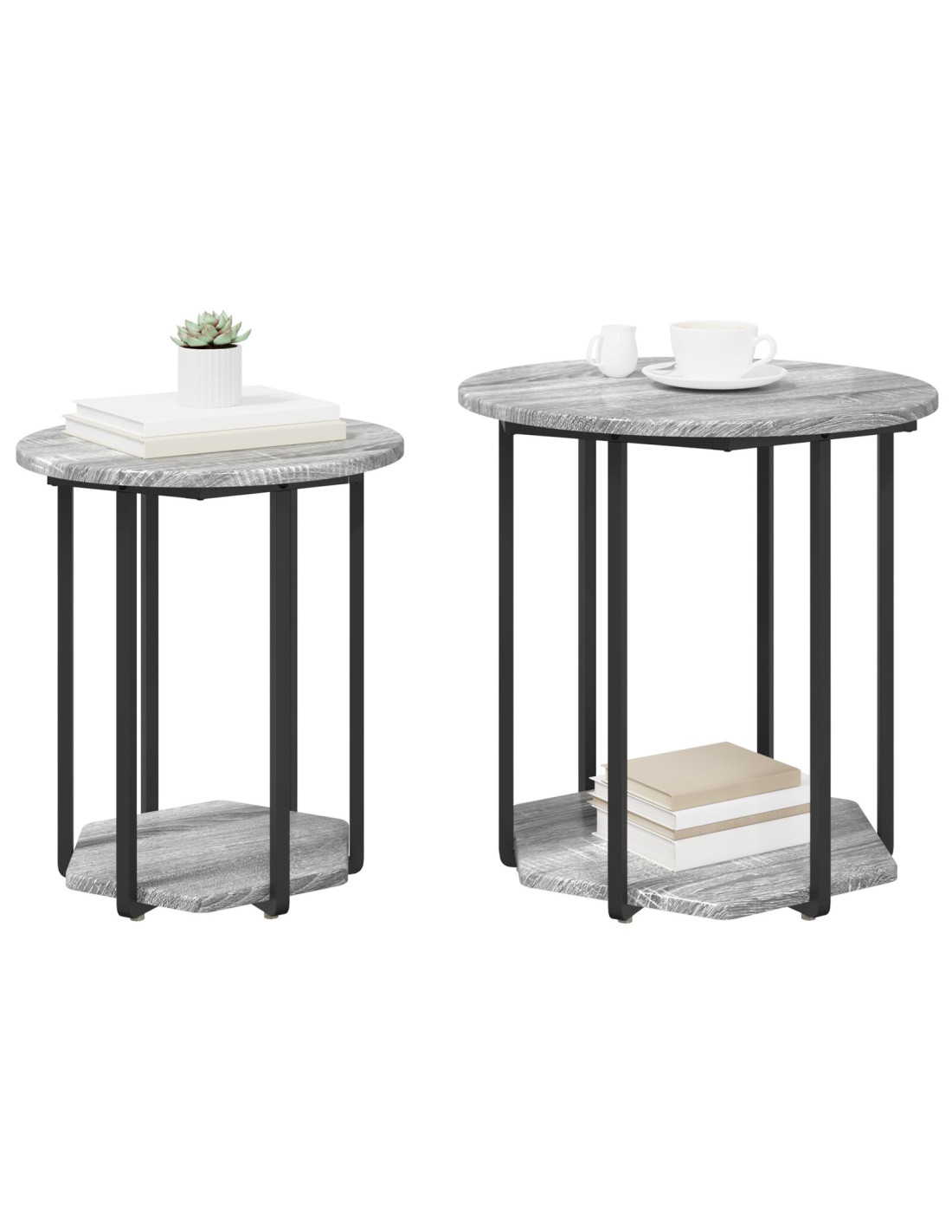 - Componenti inclusi: I tavoli hanno ripiani pensati per lo stoccaggio semplice, ideali per mostrare libri o decorazioni. Le strutture in metallo forniscono supporto in più e completano il look industriale, rendendo i tavoli pratici e alla moda.