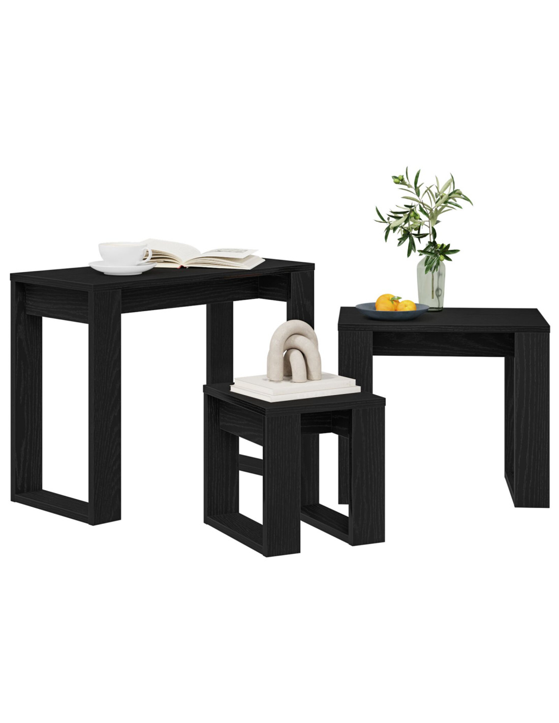 Questo set di tavoli da annidamento è un pezzo di arredamento elegante e versatile che si adatta a qualsiasi spazio moderno. Con il suo design semplice che punta sulla funzionalità, migliora la tua casa, diventando un punto focale del soggiorno. Aggiunge un tocco chic e moderno, rappresentando lo stile alto senza troppa manutenzione, perfetto per creare spazi accoglienti o mostre stilose.