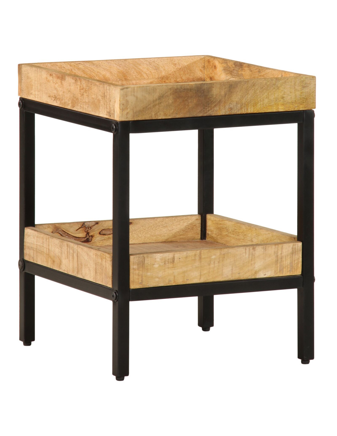 - Piano in legno massello di mango Questo tavolino ha un resistente piano in legno di mango, famoso per la sua solidità e per le venature naturali che gli danno un tocco caldo e unico. Si sposa bene con stili diversi, dal moderno al rustico. Facile da mantenere e durevole, è una scelta conveniente per chi cerca mobili di qualità.