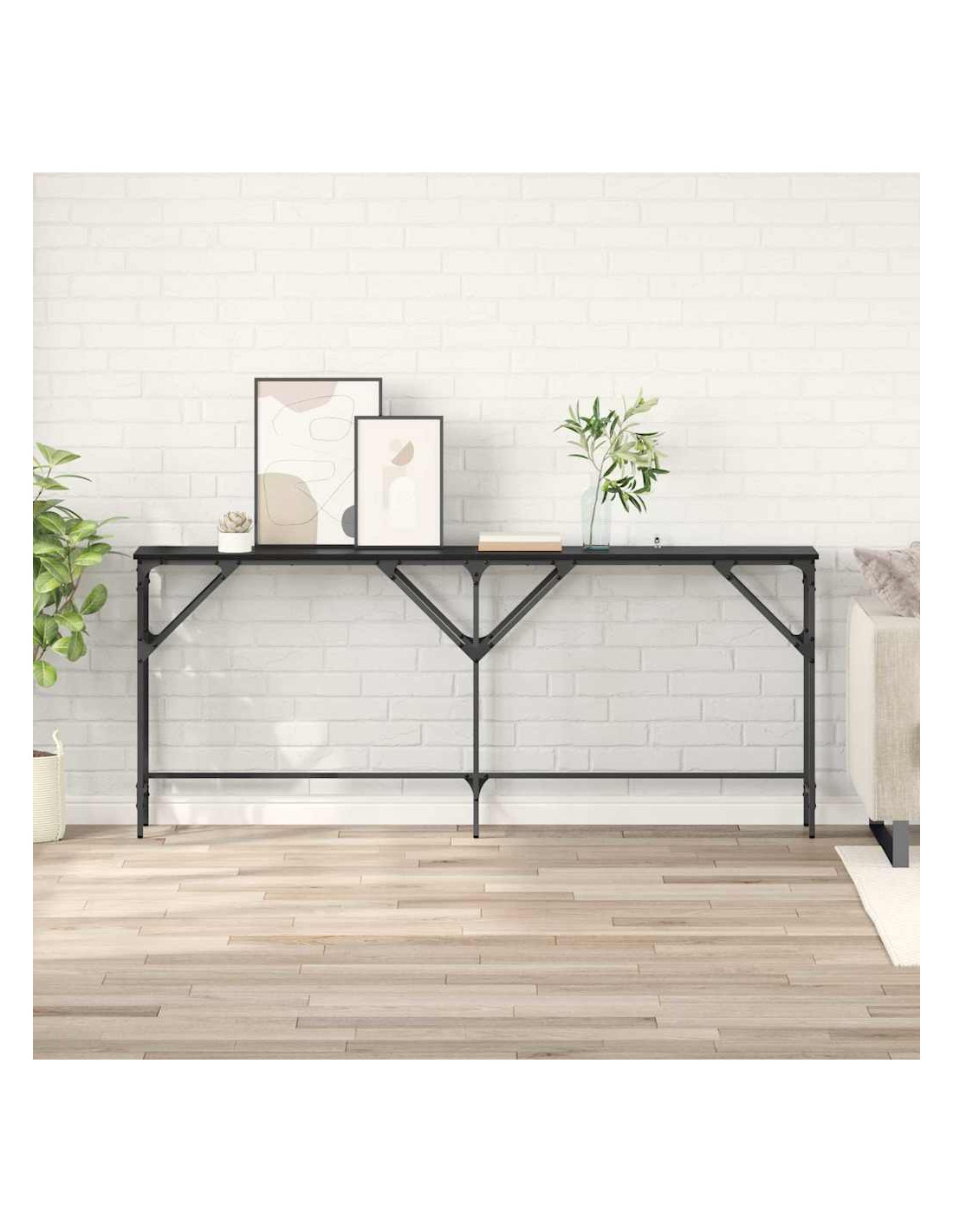 - Composizione dei Materiali: Realizzato in legno ingegnerizzato di alta qualità, questo tavolo consolle ha una superficie robusta e liscia. La struttura in acciaio garantisce stabilità e durata. Il legno ingegnerizzato è resistente e la finitura è bella, mentre l'acciaio verniciato a polvere assicura una lunga vita.