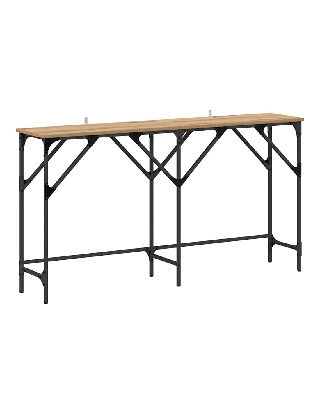 - Composizione dei Materiali: Realizzato in legno ingegnerizzato di alta qualità, questo tavolo consolle ha una superficie robusta e liscia. La struttura in acciaio garantisce stabilità e durata. Il legno ingegnerizzato è resistente e la finitura è bella, mentre l'acciaio verniciato a polvere assicura una lunga vita.