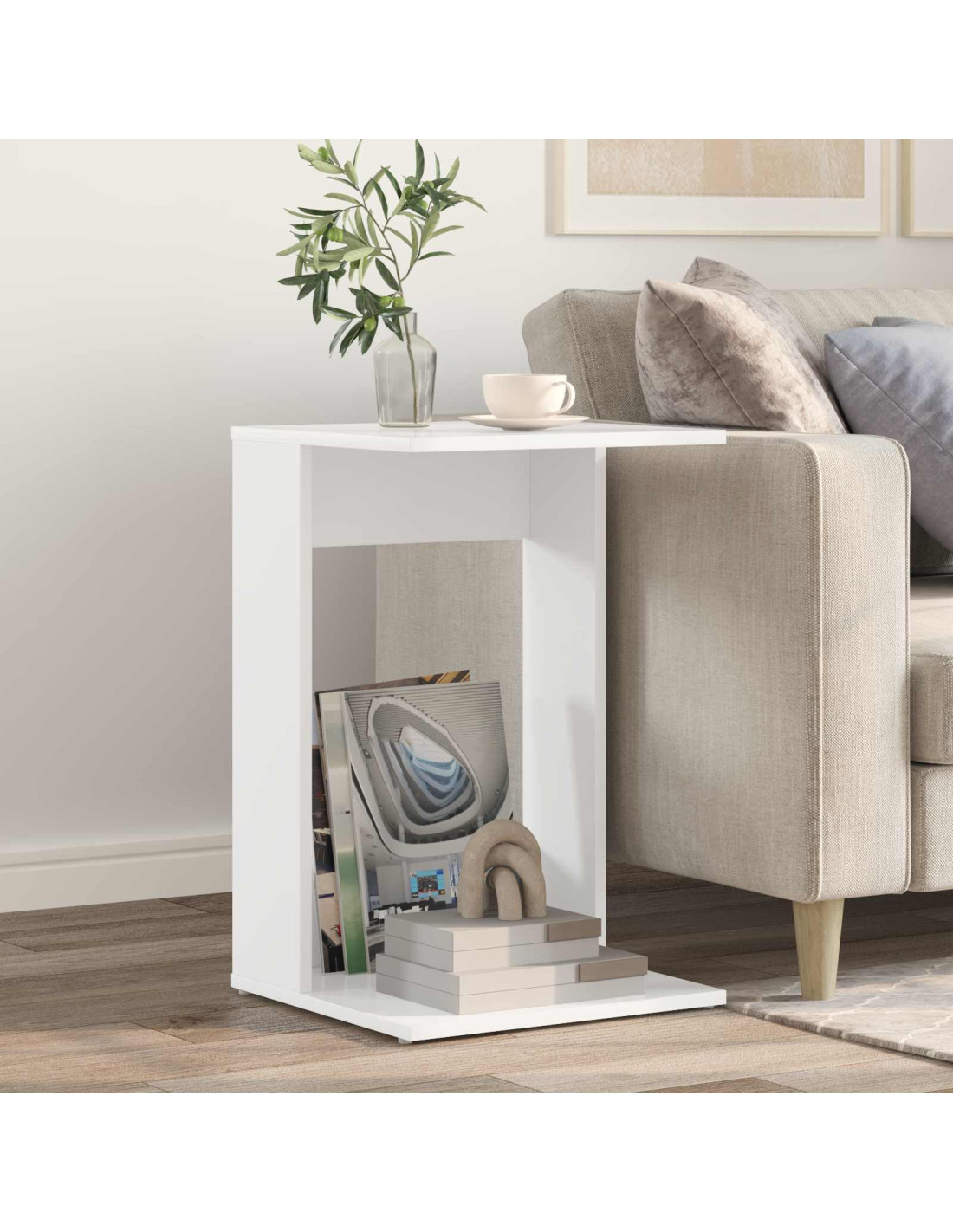 Questo tavolino moderno unisce stile e funzionalità, perfetto per dare un tocco a qualsiasi spazio interno, specialmente in soggiorno. Con il suo profilo rettangolare in legno ingegnerizzato, non solo appare elegante, ma è anche super resistente per l'uso quotidiano. Ottimo come appoggio, tiene con facilità lampade o bevande, dando un tocco chic al tuo arredamento.