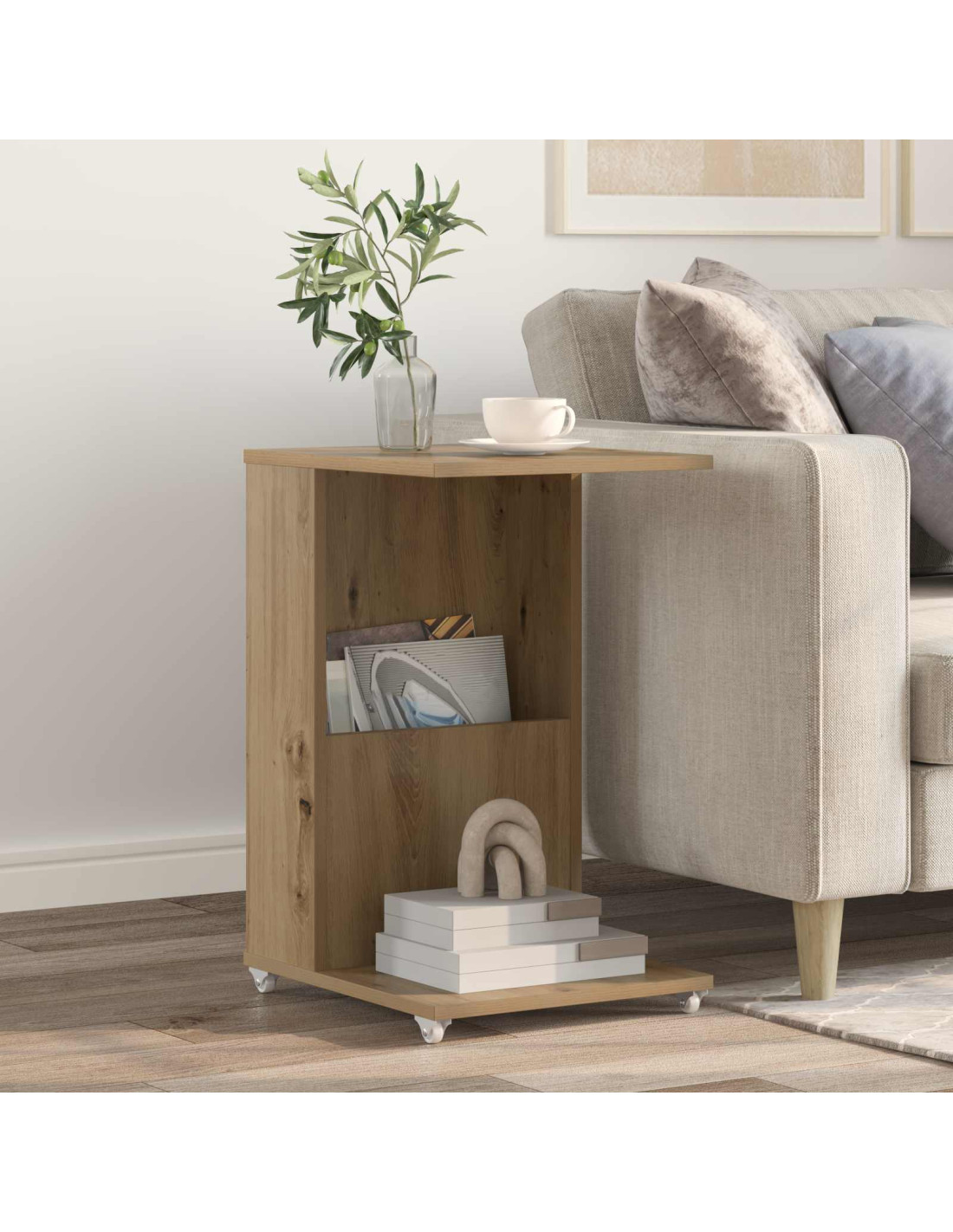 - Legno ingegnerizzato: Il tavolino è in legno ingegnerizzato, resistente e con un aspetto moderno che si sposa bene con ogni decorazione. Questo materiale è scelto con cura per la sua forza, in grado di sostenere l'uso quotidiano mantenendo un look chic.