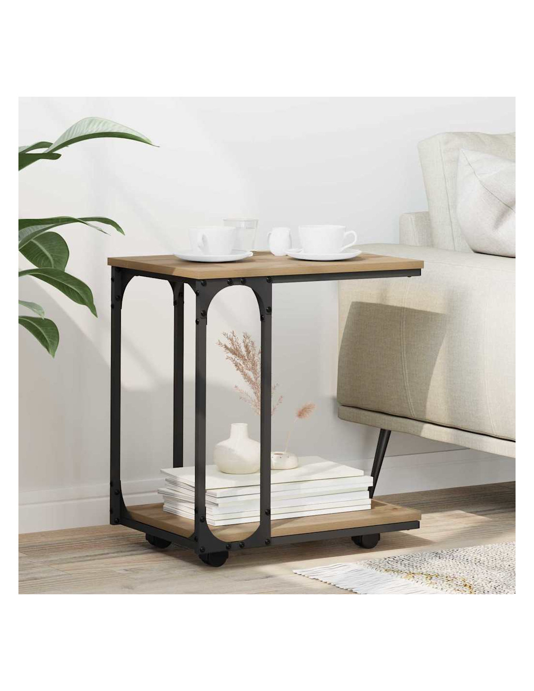 Questo tavolino laterale a forma di C con ruote porta un tocco rustico al tuo soggiorno, pensato per essere pratico e bello. La finitura calda e le dimensioni compatte lo rendono perfetto per spazi urbani, dove ogni centimetro conta. Puoi muoverlo facilmente grazie alle ruote bloccabili, posizionandolo dove vuoi per usarlo come appoggio per bevande, lampade o decorazioni, tutto mentre offre anche spazio di stoccaggio. La superficie in legno ingegnerizzato e il telaio in metallo promettono durata e stile.
