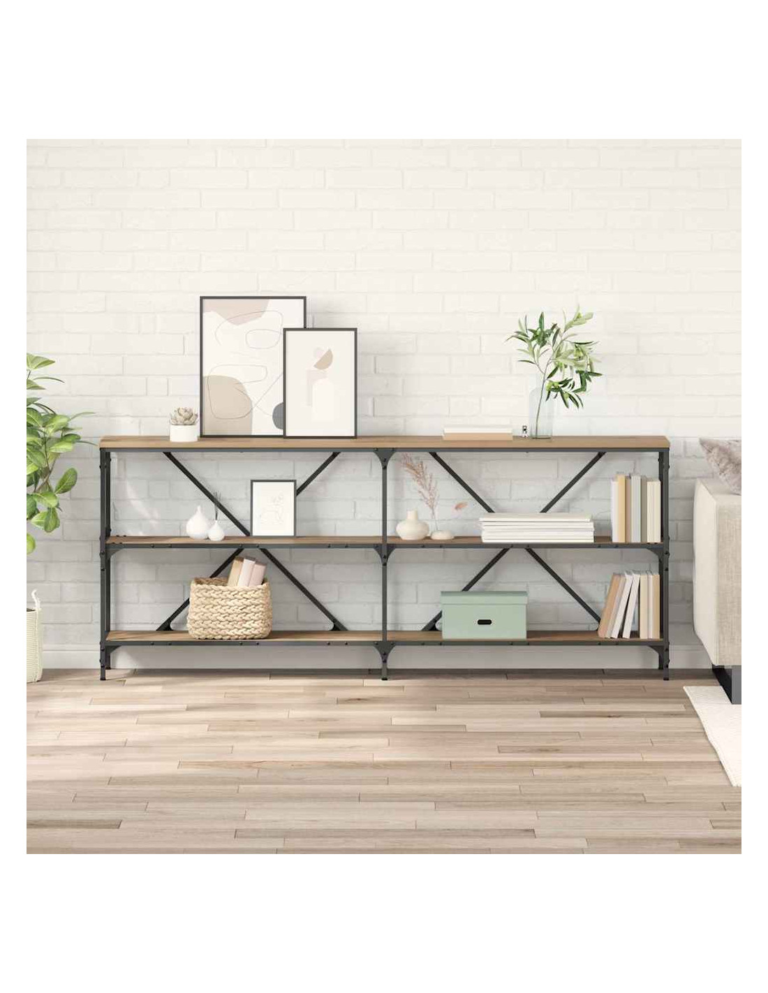 Questo tavolo da consolle è un bel mix di design moderno e praticità. Si inserisce alla grande in corridoi o soggiorni, portando sia stile che funzionalità. Costruito in legno ingegnerizzato, ha un look lucido e levigato che invita a usarlo. Non è solo un mobile, ma anche un modo per mostrare il tuo tocco personale, sia che tu voglia esporre fotografie preziose, impilare libri o sistemare vasi decorativi.