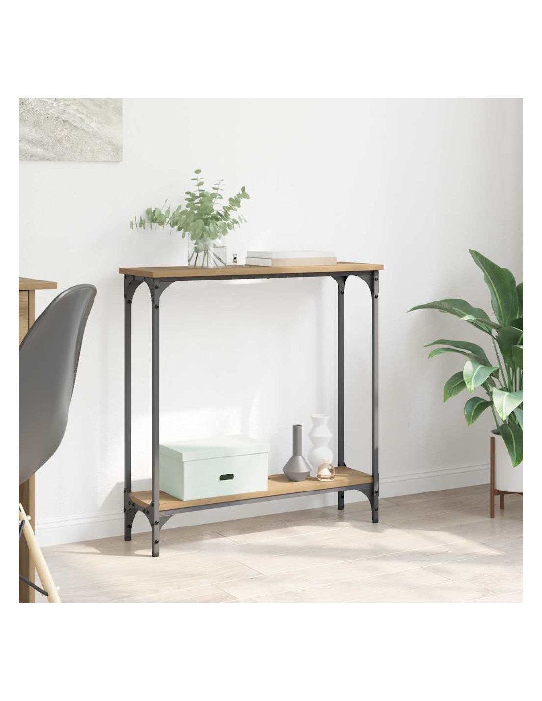 Questo tavolo console industriale unisce materiali robusti a un design elegante, rendendolo perfetto per gli spazi contemporanei. Ispirato a loft e magazzini, porta un tocco di sofisticazione in ogni stanza. Con il suo profilo snello, si adatta perfettamente ai muri, offrendo spazio per riporre o mostrare senza ingombrare. È un pezzo versatile, ottimo per corridoi, soggiorni o ingressi.