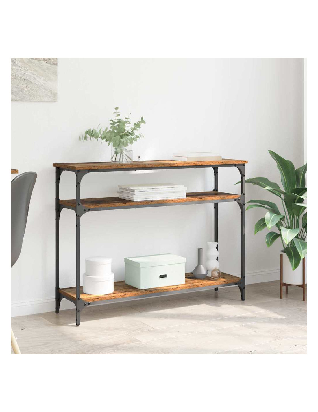 - Componenti Inclusi: Con ripiani pratici, il tavolo consolle offre ampio spazio per tenere in ordine libri, decorazioni o dispositivi elettronici. Il robusto telaio in metallo verniciato a polvere non solo è bello, ma assicura anche che tutto sia ben sostenuto.