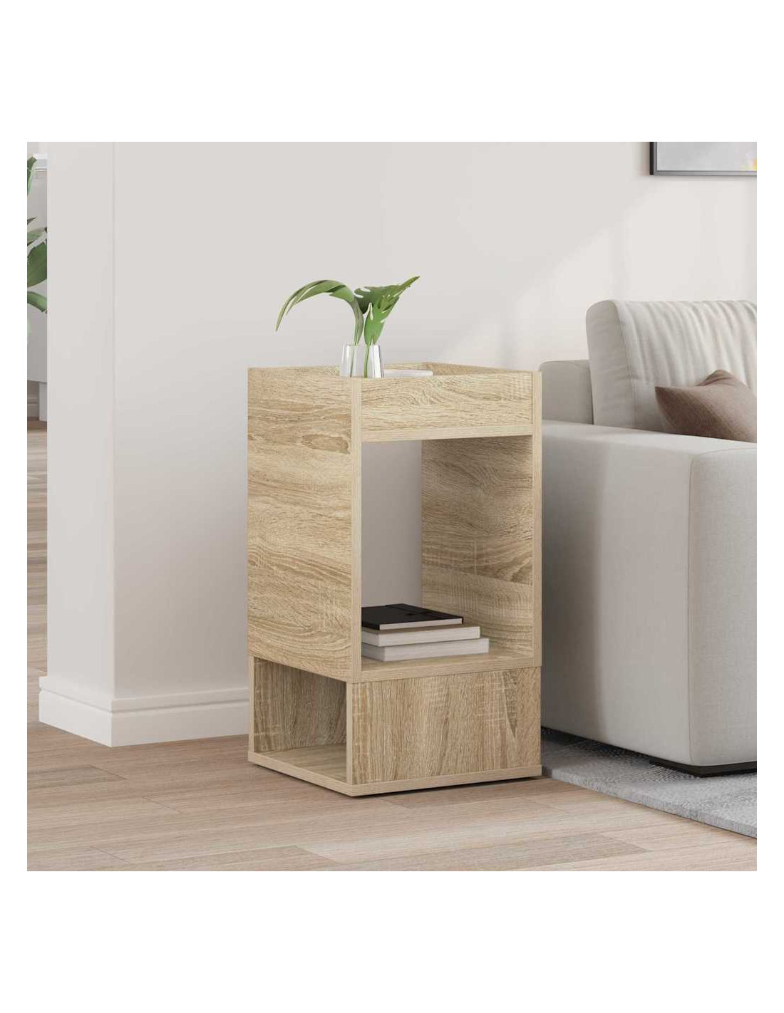 - Costruzione in legno ingegnerizzato: Questo tavolino è fatto di legno ingegnerizzato di alta qualità, che garantisce durabilità ed eleganza. La superficie è liscia e il design moderno resiste bene all'uso quotidiano. Il legno ingegnerizzato assicura stabilità e solidità, rendendolo un'ottima aggiunta per il soggiorno.