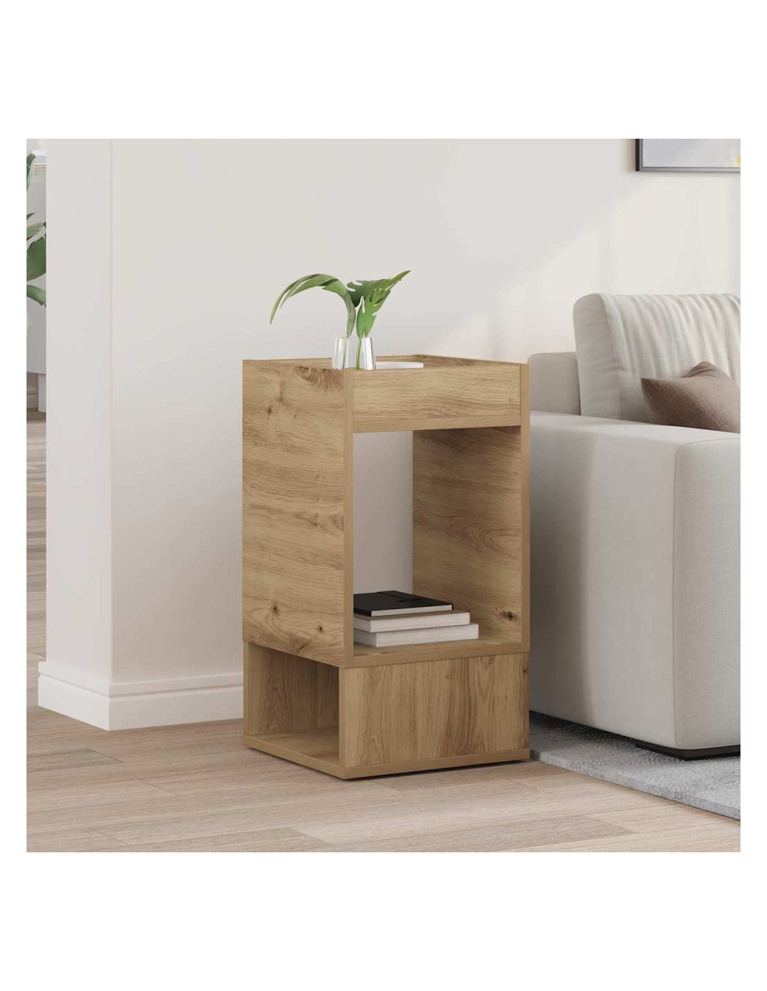 - Costruzione in legno ingegnerizzato: Questo tavolino è fatto di legno ingegnerizzato di alta qualità, che garantisce durabilità ed eleganza. La superficie è liscia e il design moderno resiste bene all'uso quotidiano. Il legno ingegnerizzato assicura stabilità e solidità, rendendolo un'ottima aggiunta per il soggiorno.