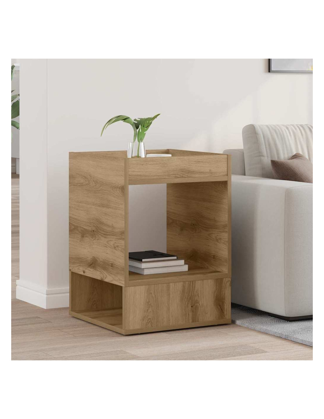 - Costruzione in legno ingegnerizzato: Questo tavolino è fatto di legno ingegnerizzato di alta qualità, che garantisce durabilità ed eleganza. La superficie è liscia e il design moderno resiste bene all'uso quotidiano. Il legno ingegnerizzato assicura stabilità e solidità, rendendolo un'ottima aggiunta per il soggiorno.