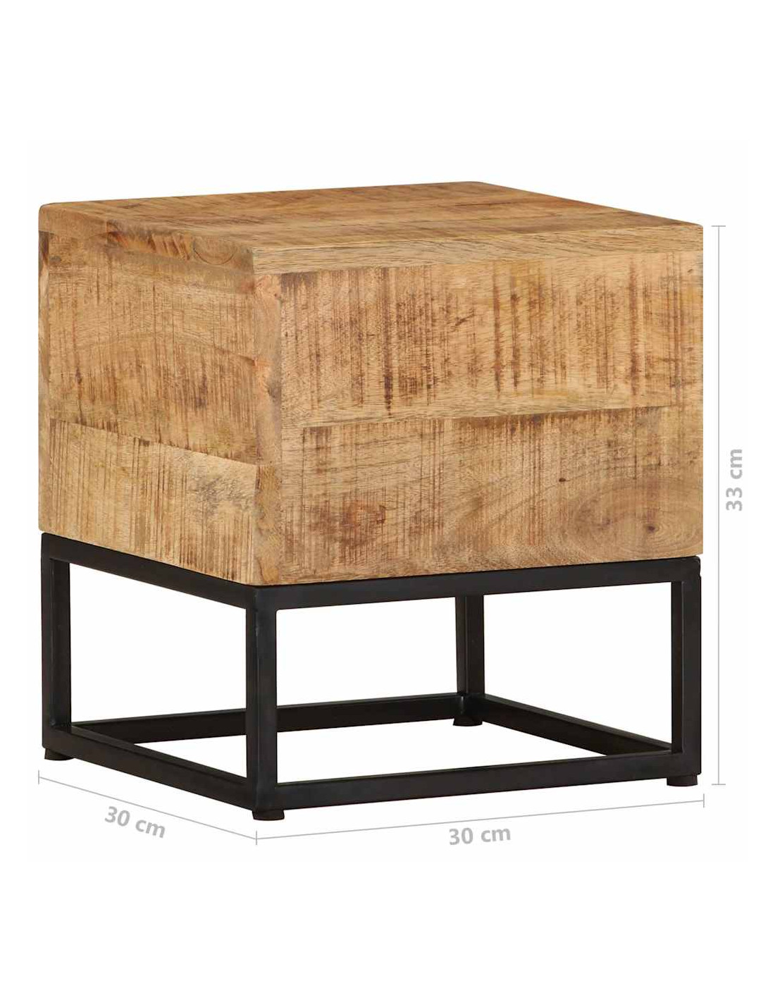 - Materiale: Legno massello di mango grezzo con finitura naturale, ferro verniciato a polvere nera