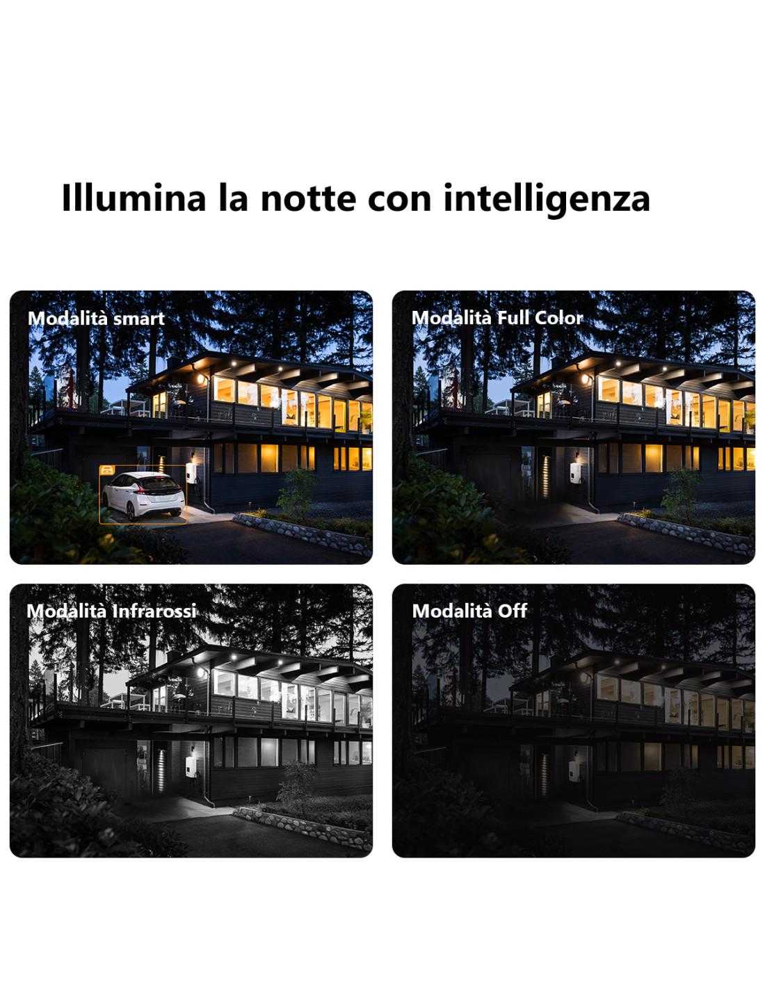 Cruiser 2C può regolare diverse modalità di visione notturna in base alle vostre esigenze, sia che vogliate che la visione notturna rimanga sempre a colori, sia che vogliate accendere i colori solo in caso di eventi per risparmiare energia.