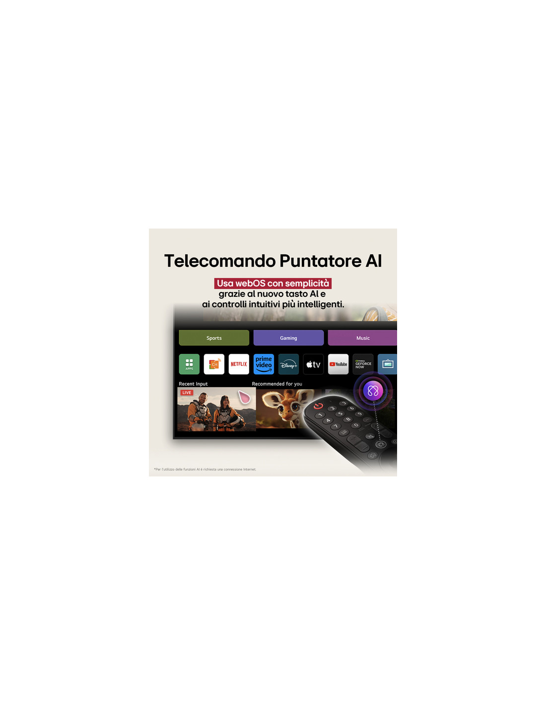 Il rivoluzionario Telecomando Puntatore AI porta l'interazione con il tuo dispositivo a un livello superiore grazie alla presenza del nuovo tasto AI, che semplifica e accelera l'accesso alle funzioni più avanzate. Oltre ai comandi vocali, che permettono un controllo ancora più intuitivo, il telecomando offre anche la funzionalità drag & drop, che consente di navigare e spostare contenuti più facilmente.