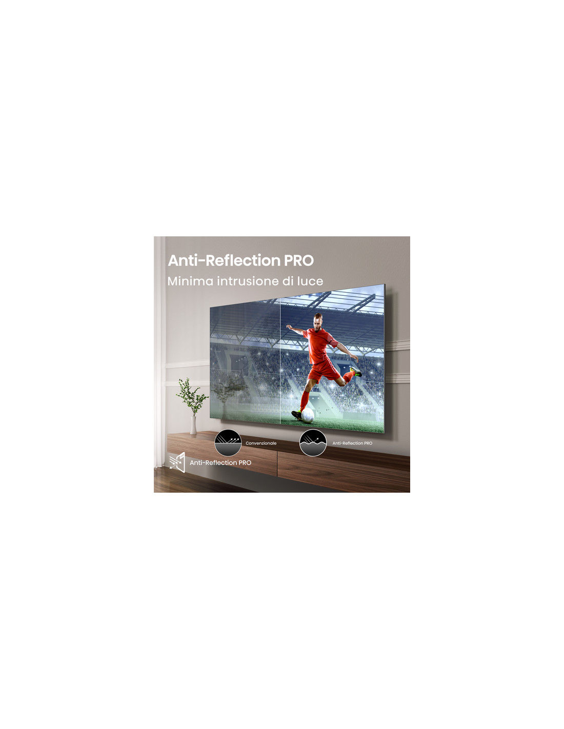Che si tratti di una stanza illuminata dal sole o di una lampada da notte, i riflessi non interferiscono più con la vista. L'Anti-Reflection PRO di Hisense contrasta i riflessi indesiderati e garantisce che il tuo schermo venga visualizzato esattamente come dovrebbe: pura brillantezza cinematografica.