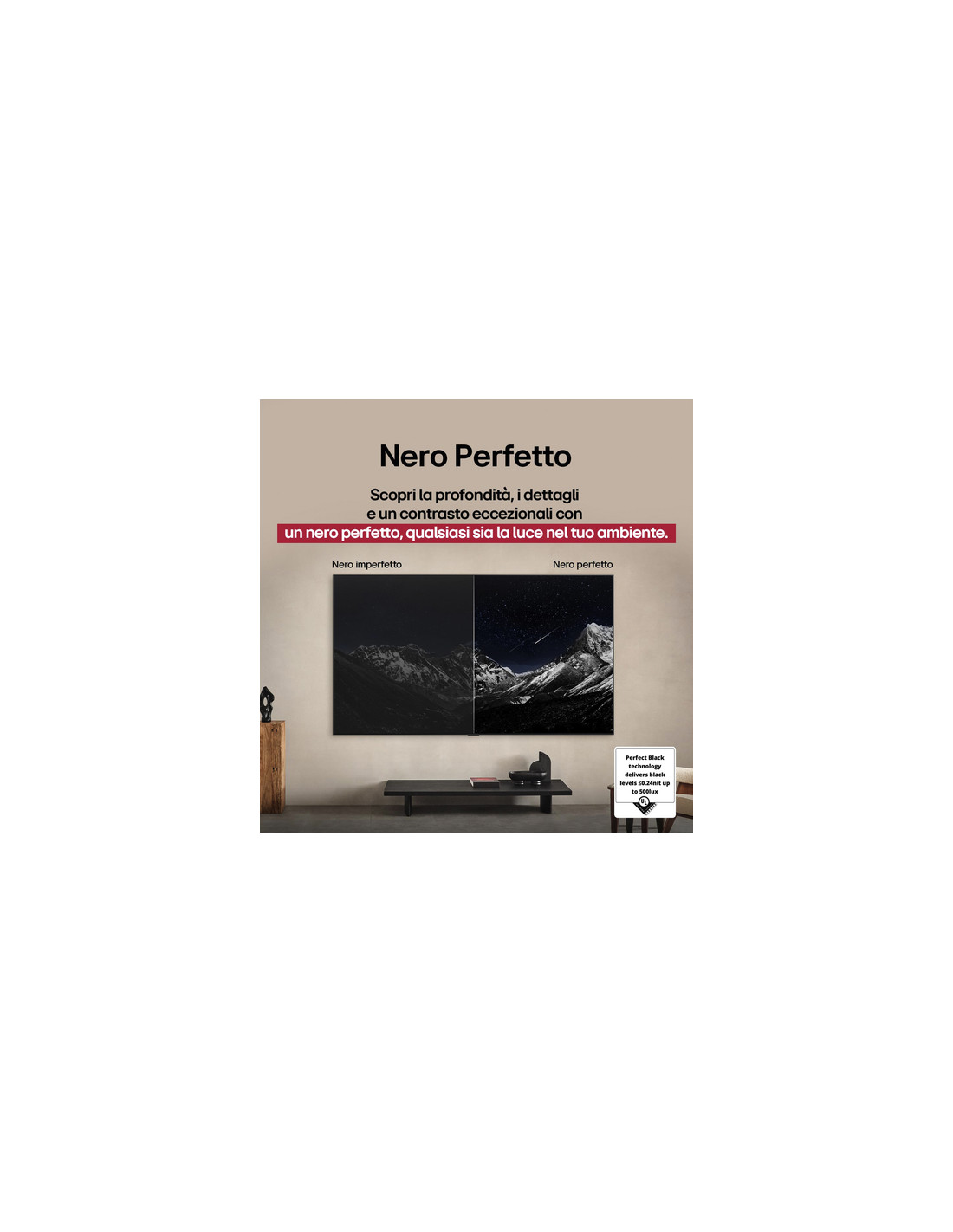 Un TV OLED così è tutto da guardare. La cornice è talmente sottile da farti immergere nelle immagini senza alcuna distrazione, rendendo la visione ancora più coinvolgente. Ma è un TV straordinario anche quando è spento - sia quando lo appendi sia quando lo appoggi su un mobile - grazie al profilo incredibilmente sottile che completa il tuo arredamento con un tocco avveniristico.