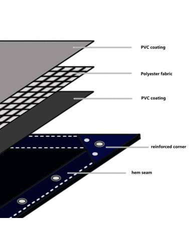 Questo telone impermeabile 650g/m² offre una protezione robusta contro il maltempo e ha un aspetto moderno e semplice. È fatto con tela e rivestimento in PVC, così qualsiasi cosa tu voglia proteggere rimane al sicuro. È perfetto sia per uso interno che esterno e si adatta bene a giardini, terrazze o garage. La sua superficie opaca combina eleganza e funzionalità, seguendo il principio del design moderno che punta alla semplicità.
