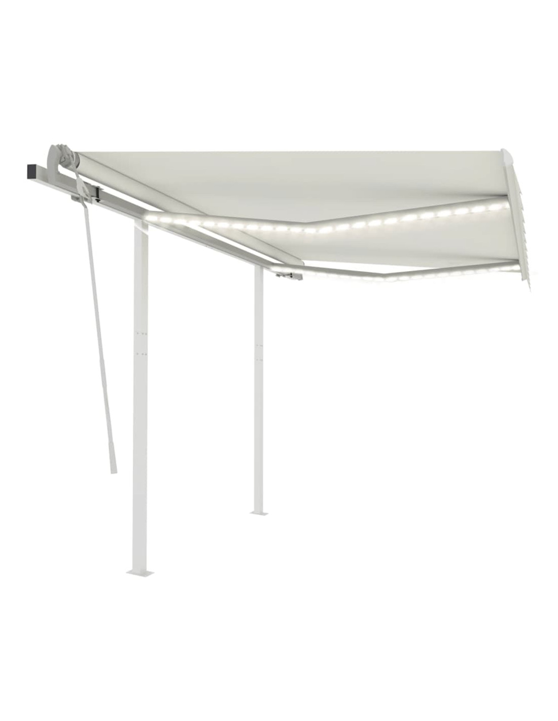 Questa tenda da sole per esterni, costruita con un telaio in alluminio verniciato a polvere antiruggine, è leggera ma robusta. I sostegni in ferro conferiscono ulteriore stabilità. Il tessuto della tenda da sole è realizzato in poliestere ad alta densità con rivestimento in PU, resistente all'acqua e ai raggi UV. L'angolazione e l'altezza possono essere regolati per soddisfare le vostre esigenze. Grazie alla lunga manovella è possibile aprire e ritrarre la tenda da sole facilmente. La tenda è dotata di luci LED solari che permettono di risparmiare energia.
