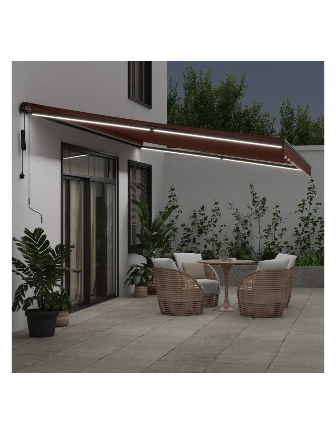 Create un posto bello e fresco nel vostro patio e proteggetevi dai raggi UV con questa tenda da sole retrattile! Materiale resistente: Il telaio della tenda è realizzato in alluminio verniciato a polvere, quindi è robusto e durevole. Il tessuto con il trattamento della superficie in PU è resistente ai raggi UV. Evita che la vostra famiglia o i vostri ospiti siano esposti ai raggi UV e alla luce abbagliante del sole.Funzione automatica: Potete aprire e chiudere facilmente la tenda tramite il telecomando in dotazione.Facile da usare: l'angolo e l'altezza possono essere regolati per soddisfare le diverse esigenze. È possibile aprire e ritrarre la tenda senza problemi tramite la manovella lunga.Luci a LED e sensore del vento: Le luci a LED integrate nella tenda da sole illuminano il tuo spazio abitativo all'aperto e creano un'atmosfera accogliente e romantica quando il sole tramonta. È inoltre dotata di un sensore del vento, che può chiudere automaticamente la tenda nelle giornate di forte vento.Ampie applicazioni: La tenda da sola autoportante è caratterizzata da un design semplice ed elegante che si adatta bene agli ambienti domestici o commerciali. È adatta a una varietà di luoghi, come ad esempio balconi, patii, cortili, ristoranti, caffetterie, negozi, e altro ancora.