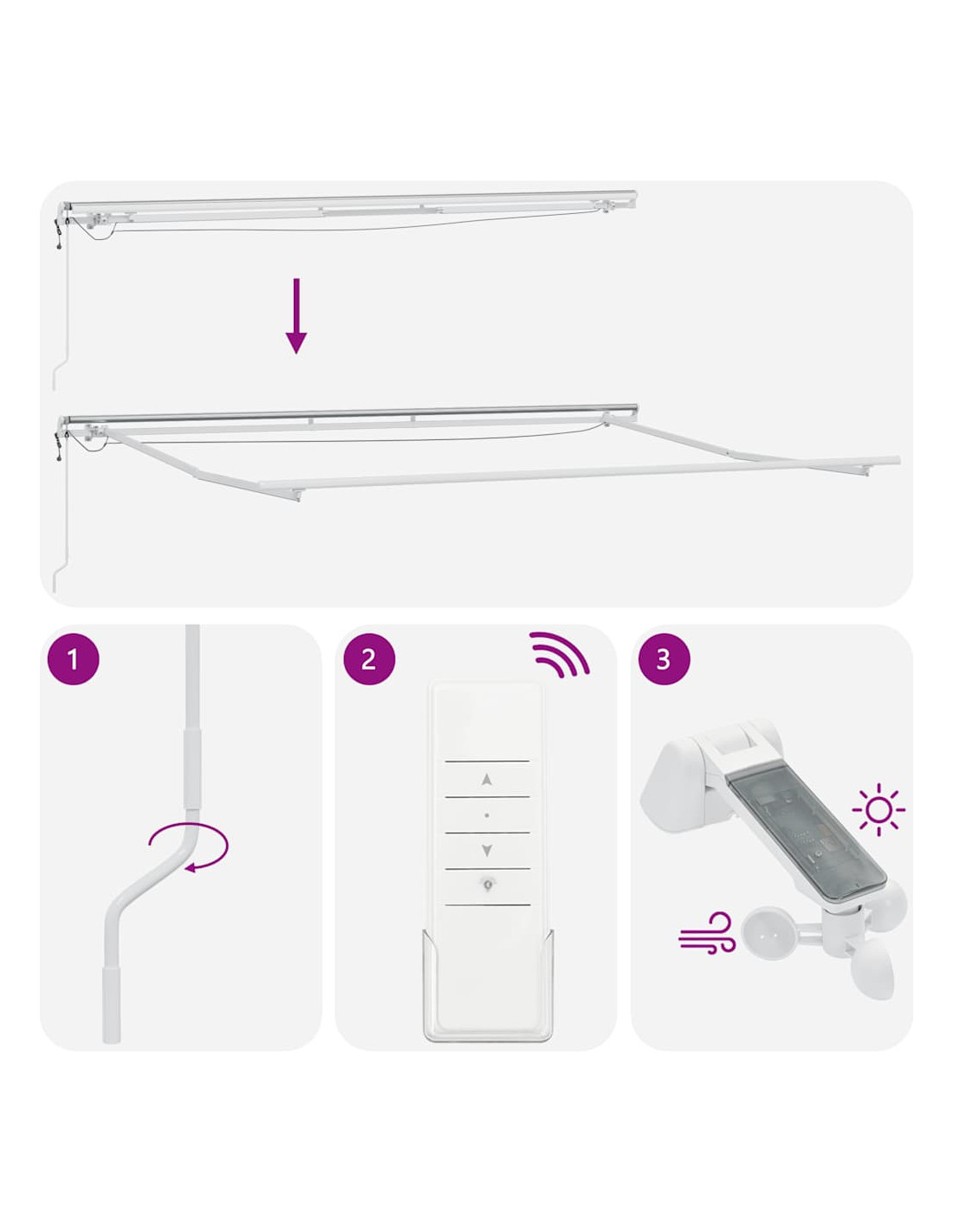 - Luci a LED e sensore del vento: Le luci a LED integrate nella tenda da sole illuminano il tuo spazio abitativo all'aperto e creano un'atmosfera accogliente e romantica quando il sole tramonta. È inoltre dotata di un sensore del vento, che può chiudere automaticamente la tenda nelle giornate di forte vento.