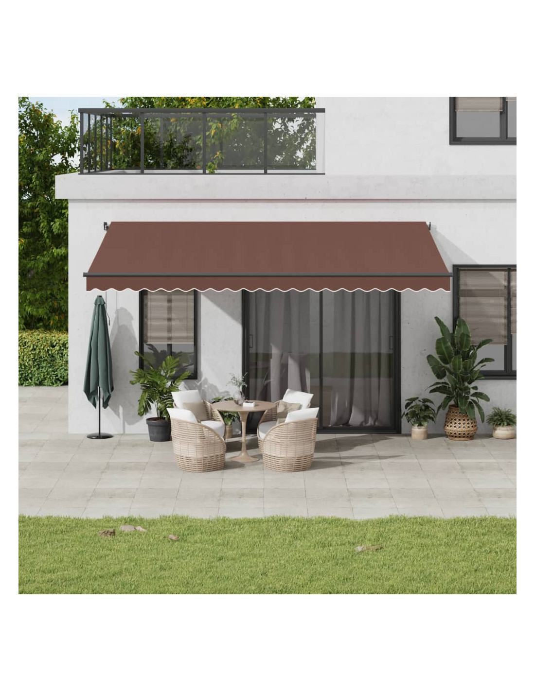 Create un posto bello e fresco nel vostro patio e proteggetevi dai raggi UV con questa tenda da sole retrattile! Materiale resistente: Il telaio della tenda è realizzato in alluminio verniciato a polvere, quindi è robusto e durevole. Il tessuto con il trattamento della superficie in PU è resistente ai raggi UV. Evita che la vostra famiglia o i vostri ospiti siano esposti ai raggi UV e alla luce abbagliante del sole.Facile da usare: l'angolo e l'altezza possono essere regolati per soddisfare le diverse esigenze. È possibile aprire e ritrarre la tenda senza problemi tramite la manovella lunga.Ampie applicazioni: La tenda da sola autoportante è caratterizzata da un design semplice ed elegante che si adatta bene agli ambienti domestici o commerciali. È adatta a una varietà di luoghi, come ad esempio balconi, patii, cortili, ristoranti, caffetterie, negozi, e altro ancora.