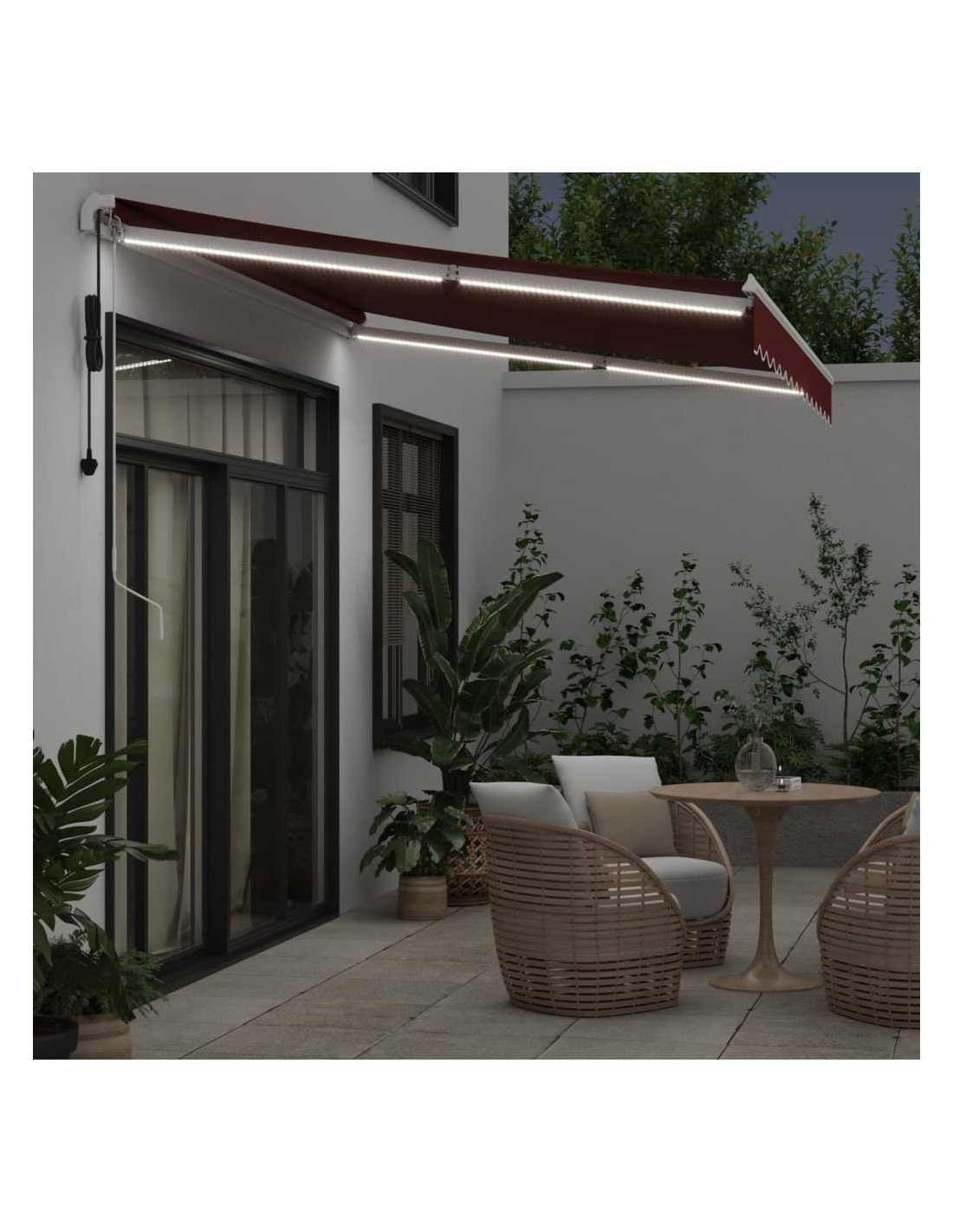 - Luci a LED e sensore del vento: Le luci a LED integrate nella tenda da sole illuminano il tuo spazio abitativo all'aperto e creano un'atmosfera accogliente e romantica quando il sole tramonta. È inoltre dotata di un sensore del vento, che può chiudere automaticamente la tenda nelle giornate di forte vento.