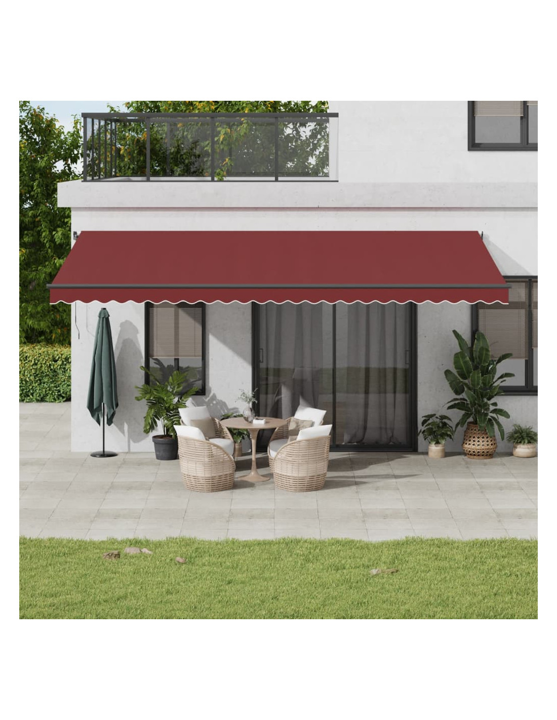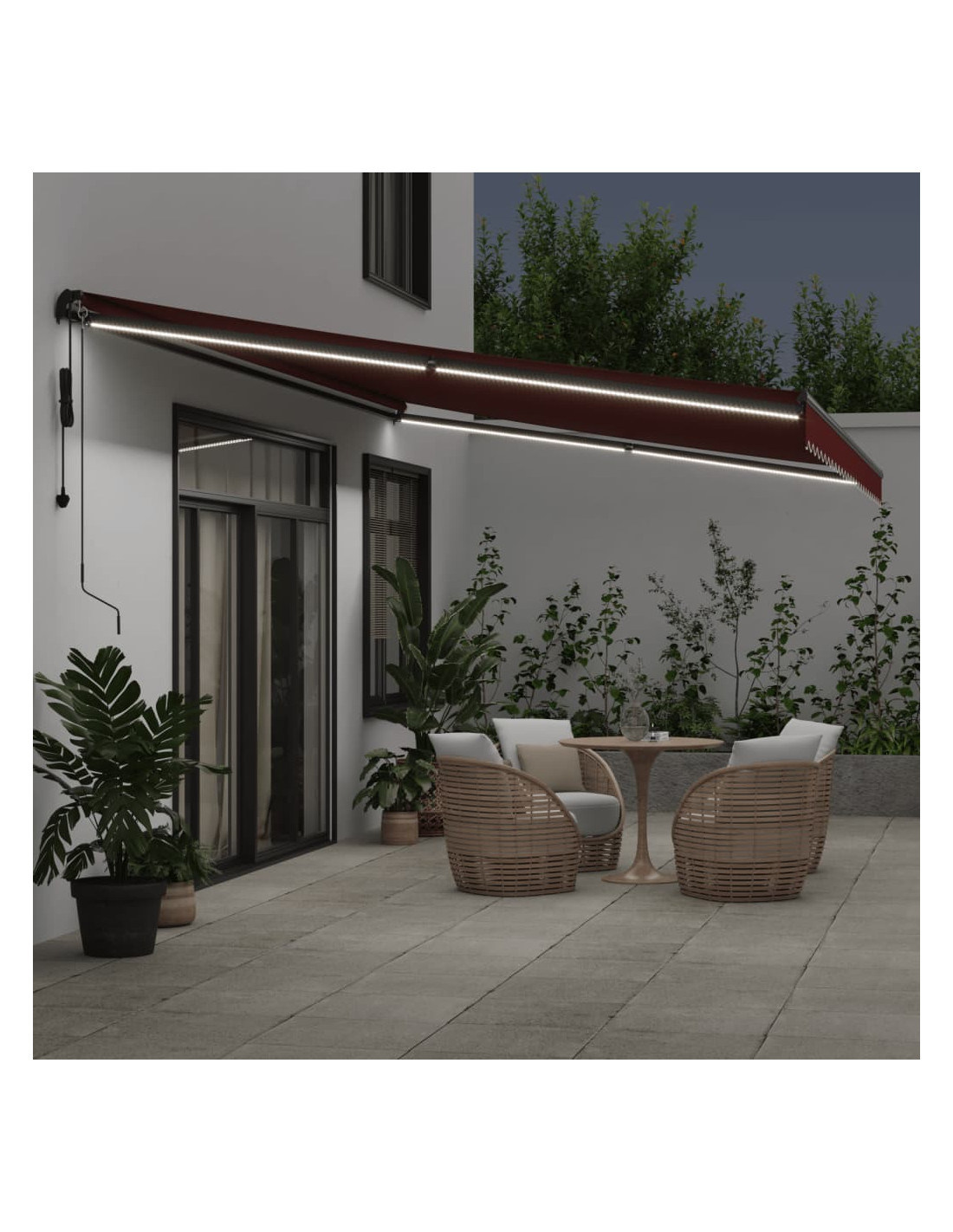 Create un posto bello e fresco nel vostro patio e proteggetevi dai raggi UV con questa tenda da sole retrattile! Materiale resistente: Il telaio della tenda è realizzato in alluminio verniciato a polvere, quindi è robusto e durevole. Il tessuto con il trattamento della superficie in PU è resistente ai raggi UV. Evita che la vostra famiglia o i vostri ospiti siano esposti ai raggi UV e alla luce abbagliante del sole.Funzione automatica: Potete aprire e chiudere facilmente la tenda tramite il telecomando in dotazione.Facile da usare: l'angolo e l'altezza possono essere regolati per soddisfare le diverse esigenze. È possibile aprire e ritrarre la tenda senza problemi tramite la manovella lunga.Luci a LED e sensore del vento: Le luci a LED integrate nella tenda da sole illuminano il tuo spazio abitativo all'aperto e creano un'atmosfera accogliente e romantica quando il sole tramonta. È inoltre dotata di un sensore del vento, che può chiudere automaticamente la tenda nelle giornate di forte vento.Ampie applicazioni: La tenda da sola autoportante è caratterizzata da un design semplice ed elegante che si adatta bene agli ambienti domestici o commerciali. È adatta a una varietà di luoghi, come ad esempio balconi, patii, cortili, ristoranti, caffetterie, negozi, e altro ancora.