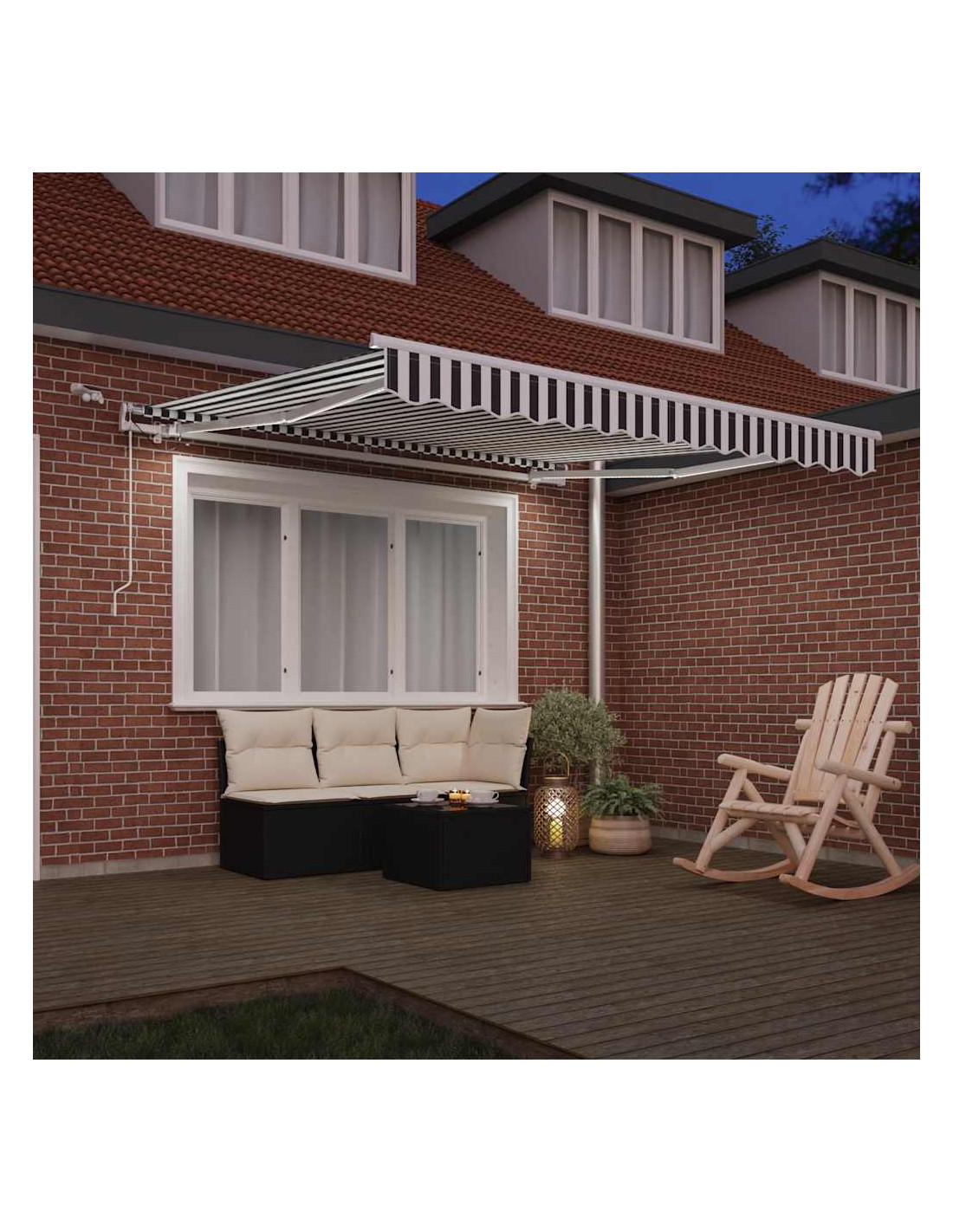 - Luci a LED e sensore del vento: Le luci a LED integrate nella tenda da sole illuminano il tuo spazio abitativo all'aperto e creano un'atmosfera accogliente e romantica quando il sole tramonta. È inoltre dotata di un sensore del vento, che può chiudere automaticamente la tenda nelle giornate di forte vento.