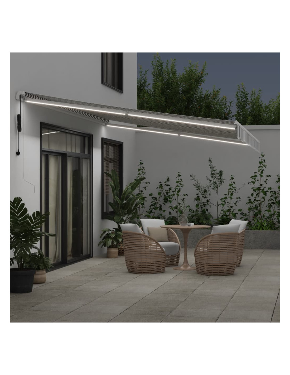 Create un posto bello e fresco nel vostro patio e proteggetevi dai raggi UV con questa tenda da sole retrattile! Tessuto resistente all'acqua e ai raggi UV: il tessuto della tenda è realizzato in poliestere ad alta densità con rivestimento in PU, resistente all'acqua, ai raggi UV e allo sbiadimento.Funzione automatica: Potete aprire e chiudere facilmente la tenda tramite il telecomando in dotazione.Facile da usare: l'angolo e l'altezza possono essere regolati per soddisfare le diverse esigenze. È possibile aprire e ritrarre la tenda senza problemi tramite la manovella lunga.Luci a LED e sensore del vento: Le luci a LED integrate nella tenda da sole illuminano il tuo spazio abitativo all'aperto e creano un'atmosfera accogliente e romantica quando il sole tramonta. È inoltre dotata di un sensore del vento, che può chiudere automaticamente la tenda nelle giornate di forte vento.Ampie applicazioni: La tenda da sola estensibile è caratterizzata da un design semplice ed elegante che si adatta bene agli ambienti domestici o commerciali. È adatta a una varietà di luoghi, come ad esempio balconi, patii, cortili, ristoranti, caffetterie, negozi, e altro ancora.