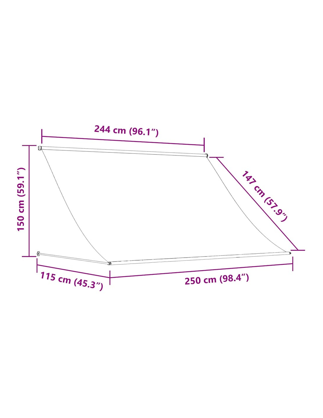 - Dimensioni totali: 250 x 150 cm (L x A)