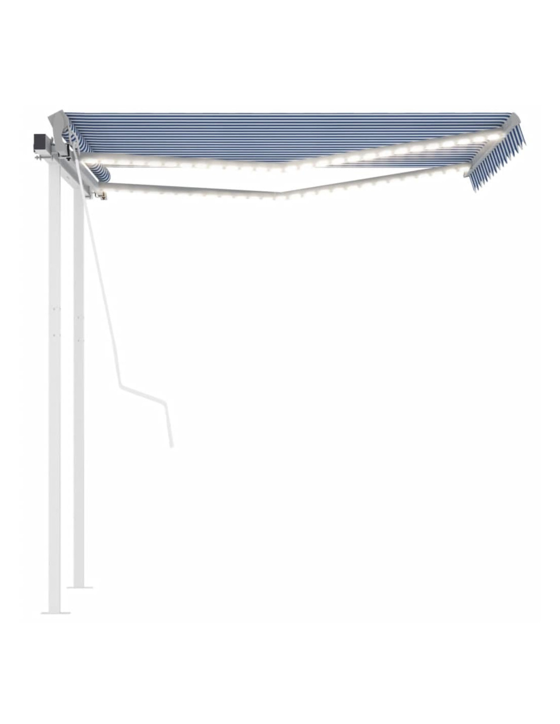 Costruita con telaio in alluminio verniciato a polvere resistente alla ruggine, questa tenda da sole per esterni è leggera e robusta. Il tessuto della tenda è realizzato in poliestere ad alta densità con rivestimento in PU, resistente ai raggi UV e all'acqua. Il robusto palo in ferro rende il prodotto solido e resistente. Inoltre, l'angolazione e l'altezza della tenda possono essere regolati per soddisfare le vostre esigenze specifiche. Grazie al telecomando incluso è possibile aprire e ritrarre la tenda da sole con facilità. La tenda è dotata anche di manovella per il funzionamento manuale. La tenda è dotata di un sensore del vento che può chiudere la tenda automaticamente nelle giornate ventose. Inoltre, le luci a LED forniscono un'illuminazione a risparmio energetico durante la notte.
