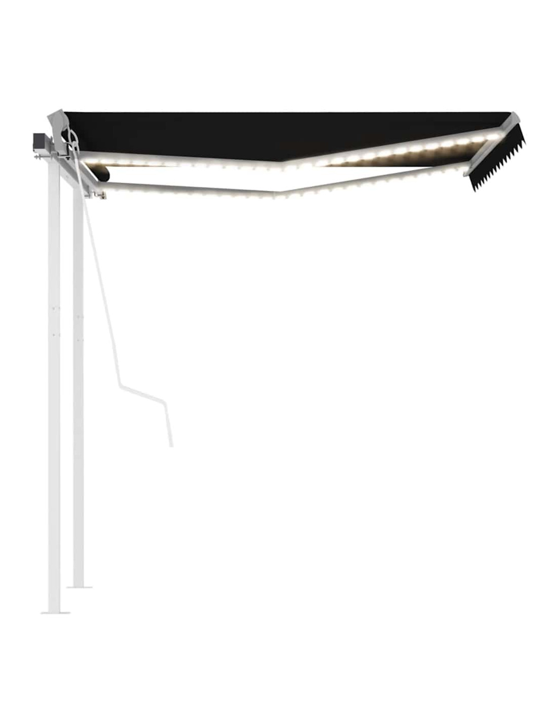 Costruita con telaio in alluminio verniciato a polvere resistente alla ruggine, questa tenda da sole per esterni è leggera e robusta. Il tessuto della tenda è realizzato in poliestere ad alta densità con rivestimento in PU, resistente ai raggi UV e all'acqua. Il robusto palo in ferro rende il prodotto solido e resistente. Inoltre, l'angolazione e l'altezza della tenda possono essere regolati per soddisfare le vostre esigenze specifiche. Grazie al telecomando incluso è possibile aprire e ritrarre la tenda da sole con facilità. La tenda è dotata anche di manovella per il funzionamento manuale. La tenda è dotata di un sensore del vento che può chiudere la tenda automaticamente nelle giornate ventose. Inoltre, le luci a LED forniscono un'illuminazione a risparmio energetico durante la notte.