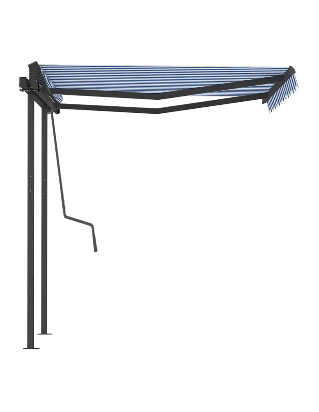 Questa tenda da sole per esterni è costruita con un telaio in alluminio verniciato a polvere resistente alla ruggine, che la rende leggera ma robusta. Il robusto palo di ferro lo rende stabile. Il tessuto della tenda da sole è realizzato in poliestere ad alta densità con rivestimento in PU, resistente all'acqua e ai raggi UV. L'angolo e l'altezza possono essere regolati per soddisfare le vostre esigenze specifiche. Potete aprire e ritrarre la tenda da sole senza problemi con la lunga manovella.