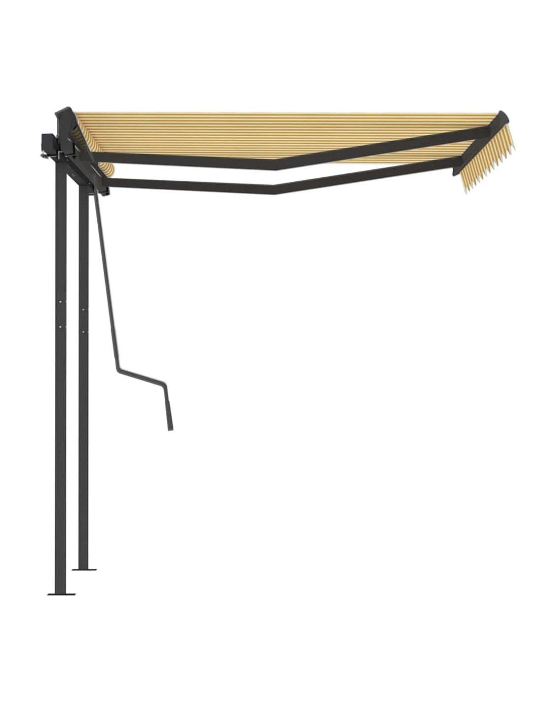 Questa tenda da sole per esterni è costruita con un telaio in alluminio verniciato a polvere resistente alla ruggine, che la rende leggera ma robusta. Il robusto palo di ferro lo rende stabile. Il tessuto della tenda da sole è realizzato in poliestere ad alta densità con rivestimento in PU, resistente all'acqua e ai raggi UV. L'angolo e l'altezza possono essere regolati per soddisfare le vostre esigenze specifiche. Potete aprire e ritrarre la tenda da sole senza problemi con la lunga manovella.