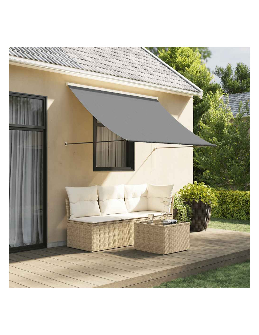 - Design a parete: La tenda da sole per esterni può essere montata facilmente alla parete con le staffe a muro incluse e non occupa spazio a pavimento.