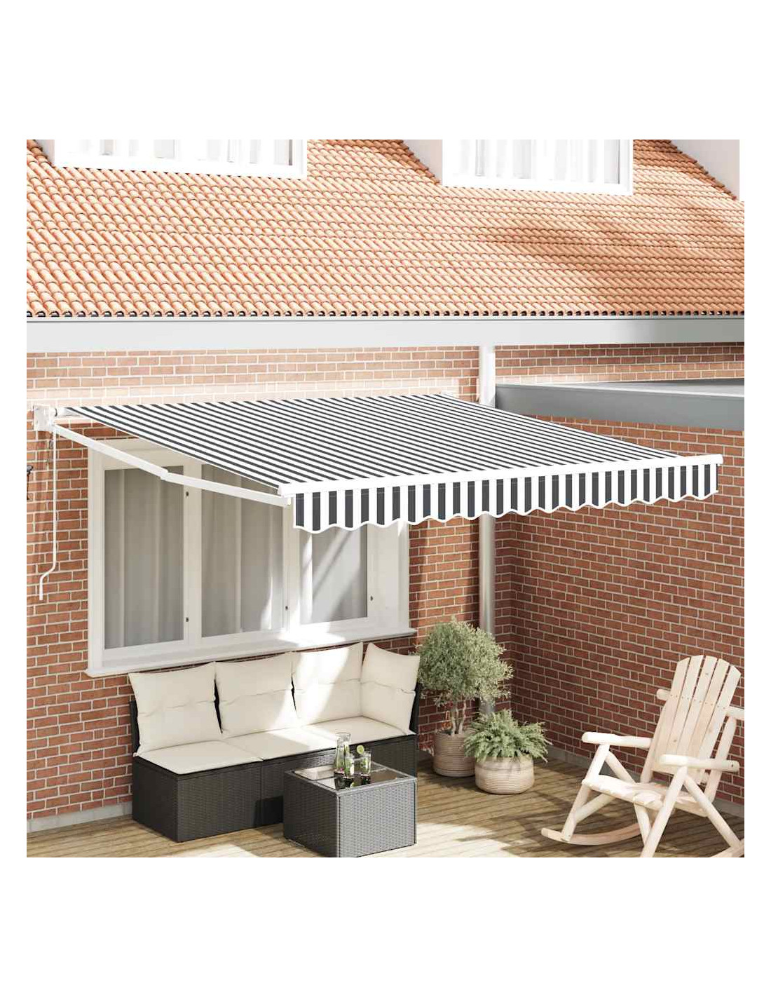 Godetevi una bevanda fresca, una gustosa sorpresa o una buona conversazione nel vostro patio con gli amici mentre vi rilassate sotto questa fantastica tenda da sole retrattile!