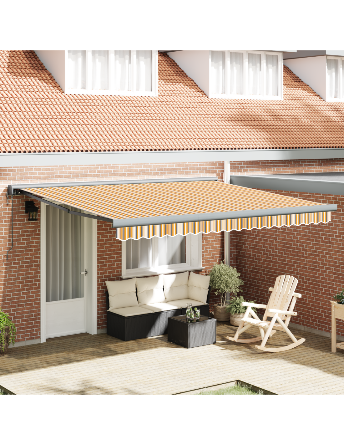 - Poliestere e alluminio resistenti: Fatta in poliestere e alluminio, la tenda retrattile è resistente e leggera, garantendo stabilità anche in condizioni meteo variabili. Il tessuto in poliestere protegge dai raggi UV, mentre la struttura in alluminio regge bene nel tempo, permettendo di usarla a lungo senza problemi. Questa combinazione ti assicura un'ottima esperienza sotto la tenda senza compromettere il suo aspetto e funzionalità nel tempo.