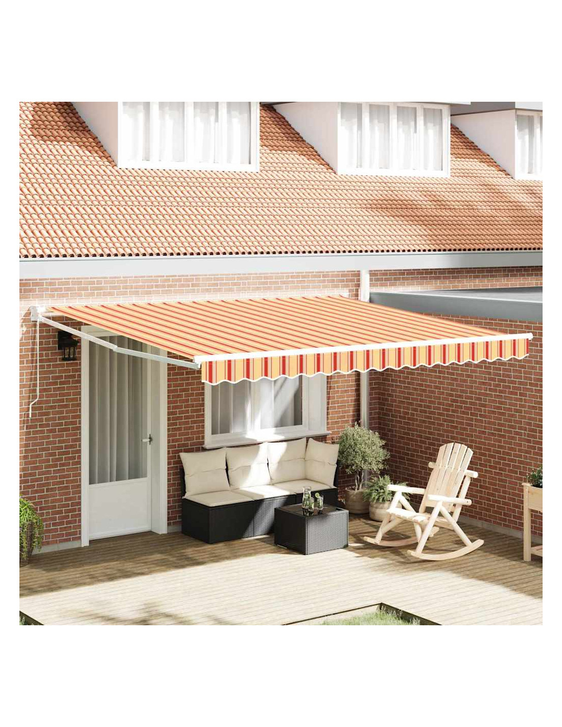 Questa tenda retrattile moderna unisce perfettamente funzionalità e stile, creando una soluzione di ombra elegante per il tuo giardino e patio. Con il suo design minimalista e linee pulite, non solo migliora l'aspetto del tuo spazio, ma è anche un accessorio pratico per le giornate di sole. Il suo tessuto in poliestere 100% giallo e arancione porta colore e vivacità, rendendo il tuo ambiente esterno accogliente e invitante. È l'ideale per chi ama il design e l'utilità, trasformando patii e giardini in rifugi comodi.