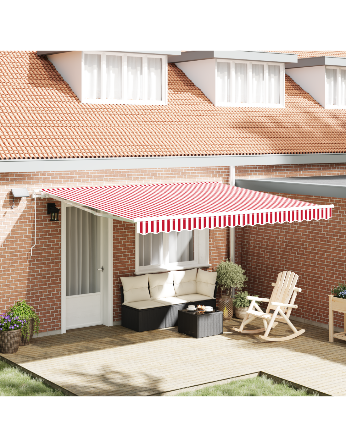 Questa tenda retrattile moderna è una soluzione chic per il tuo spazio esterno. Con il suo design minimalista, porta un tocco di eleganza al tuo giardino o terrazza. Puoi regolare la quantità di ombra con un meccanismo manuale, e le luci a LED ti regalano un'atmosfera magica per le serate in compagnia.