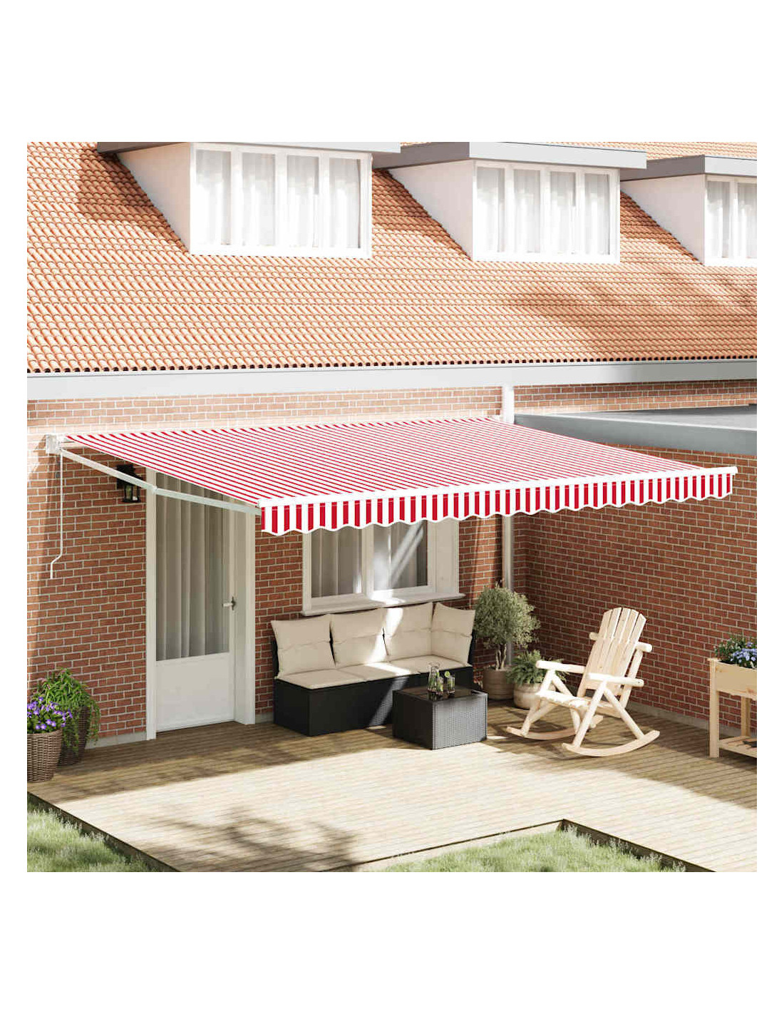 Scopri il mix perfetto di funzionalità e stile con la tenda retrattile, pensata per chi ama gli spazi all'aperto, senza rinunciare al comfort. Con il suo design contemporaneo e il vivace motivo rosso e bianco, trasforma subito il tuo giardino o terrazza in un luogo fresco e accogliente. Offre tanta ombra e migliora l'aspetto esterno, rendendola ideale per pomeriggi estivi di relax e per feste con amici. Materiali: Realizzata in poliestere e metallo, questa tenda è resistente e bella. Il poliestere UV non solo protegge dai raggi del sole ma mantiene anche i colori vividi nel tempo. Il telaio in metallo è robusto e ti assicura una struttura resistente che regge bene a diverse condizioni atmosferiche. Componenti Inclusi: Il pacchetto contiene un telo robusto per la tenda di 450 x 300 cm e un telaio altrettanto resistente. Questi componenti si uniscono per rendere l’installazione facile e funzionale, offrendoti una soluzione completa di ombra pronta all’uso. Caratteristiche /Funzione /Design: Con la sua funzione retrattile, puoi regolare il livello di ombra a piacere. Il meccanismo è semplice e ti aiuta a creare un ambiente rilassato, adattandosi alle variazioni climatiche mantenendo un look fresco e ordinato, migliorando l’esperienza all’aperto. Utilizzi Raccomandati: Questa tenda è pensata per l'estate, perfetta per giardini e terrazze. Oltre a riparare delle aree per sedersi, aggiunge un tocco di colore, adattandosi a varie occasioni sociali o momenti di relax personale. Manutenzione: Per farla durare nel tempo, richiede poca manutenzione. Basta pulirla con un detergente delicato e lasciarla asciugare all'aria per mantenere i colori brillanti. Ritirala durante condizioni climatiche estreme per evitare danni, così sarà sempre bella nel tuo giardino.