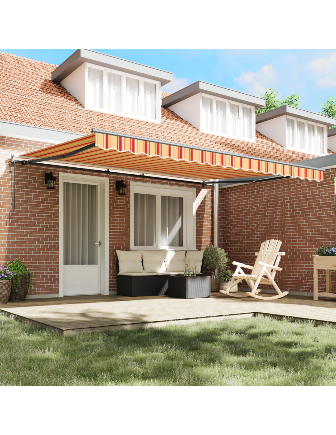 Questo elegante tendone retrattile moderno è super versatile per l'ombreggiatura esterna. Combina praticità e uno stile accattivante, perfetto per giardini e terrazze. Con linee pulite e un design minimal, si adatta benissimo agli spazi contemporanei. Ottimo per goderti l'esterno durante l'estate, protegge dal sole e dalla pioggia, creando un ambiente fresco e accogliente per relax o incontri.