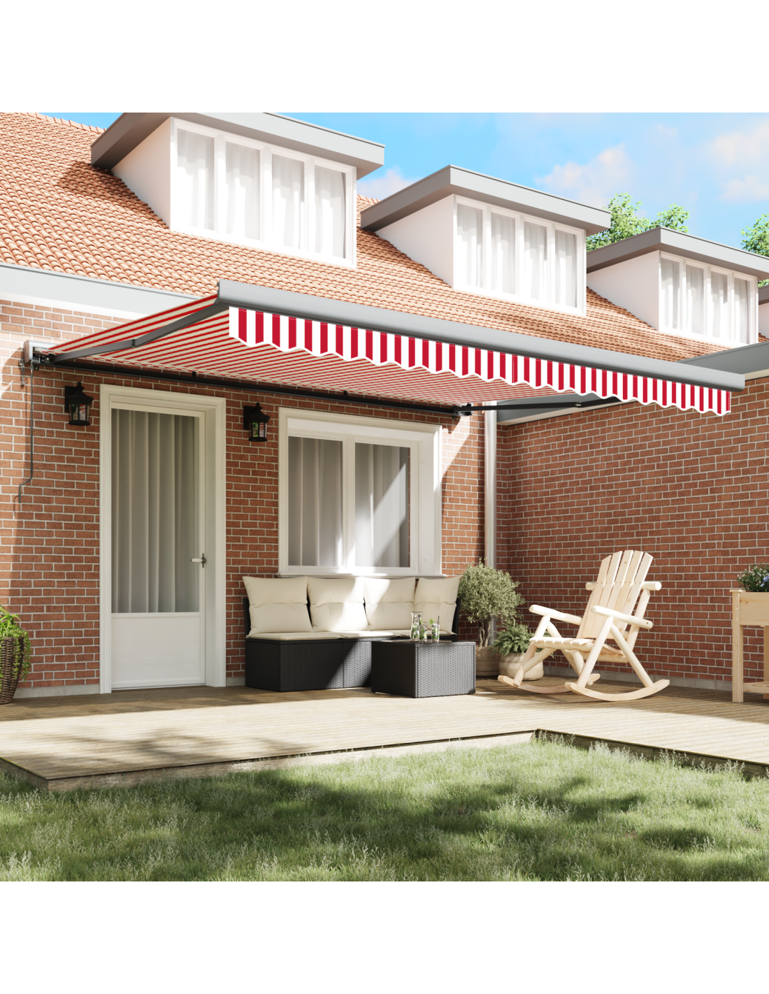 - Poliestere e alluminio resistenti: Fatta in poliestere e alluminio, la tenda retrattile è resistente e leggera, garantendo stabilità anche in condizioni meteo variabili. Il tessuto in poliestere protegge dai raggi UV, mentre la struttura in alluminio regge bene nel tempo, permettendo di usarla a lungo senza problemi. Questa combinazione ti assicura un'ottima esperienza sotto la tenda senza compromettere il suo aspetto e funzionalità nel tempo.