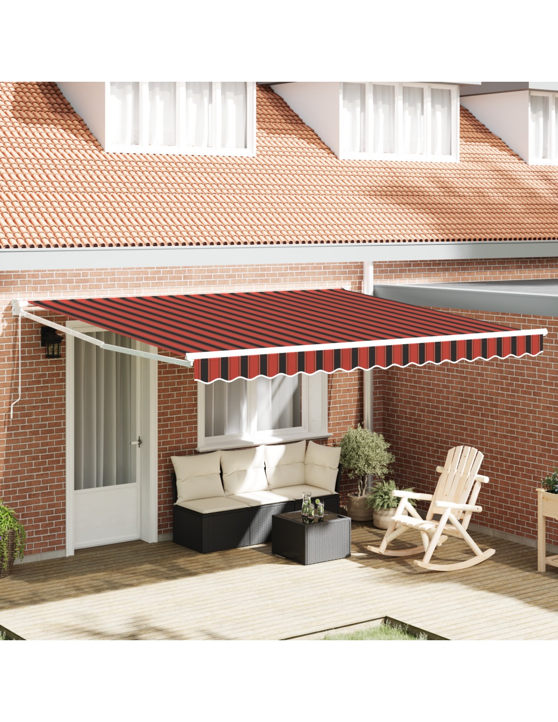 Questa tenda retrattile moderna è l'ideale per chi cerca un'oasi di ombra nel proprio spazio esterno. Semplice e raffinata, si adatta bene a giardini e terrazze moderne. I colori vivaci giallo e arancione, insieme a linee eleganti, fanno di questa tenda un'ottima scelta per ogni occasione, che si tratti di un incontro con amici o di un momento di relax.