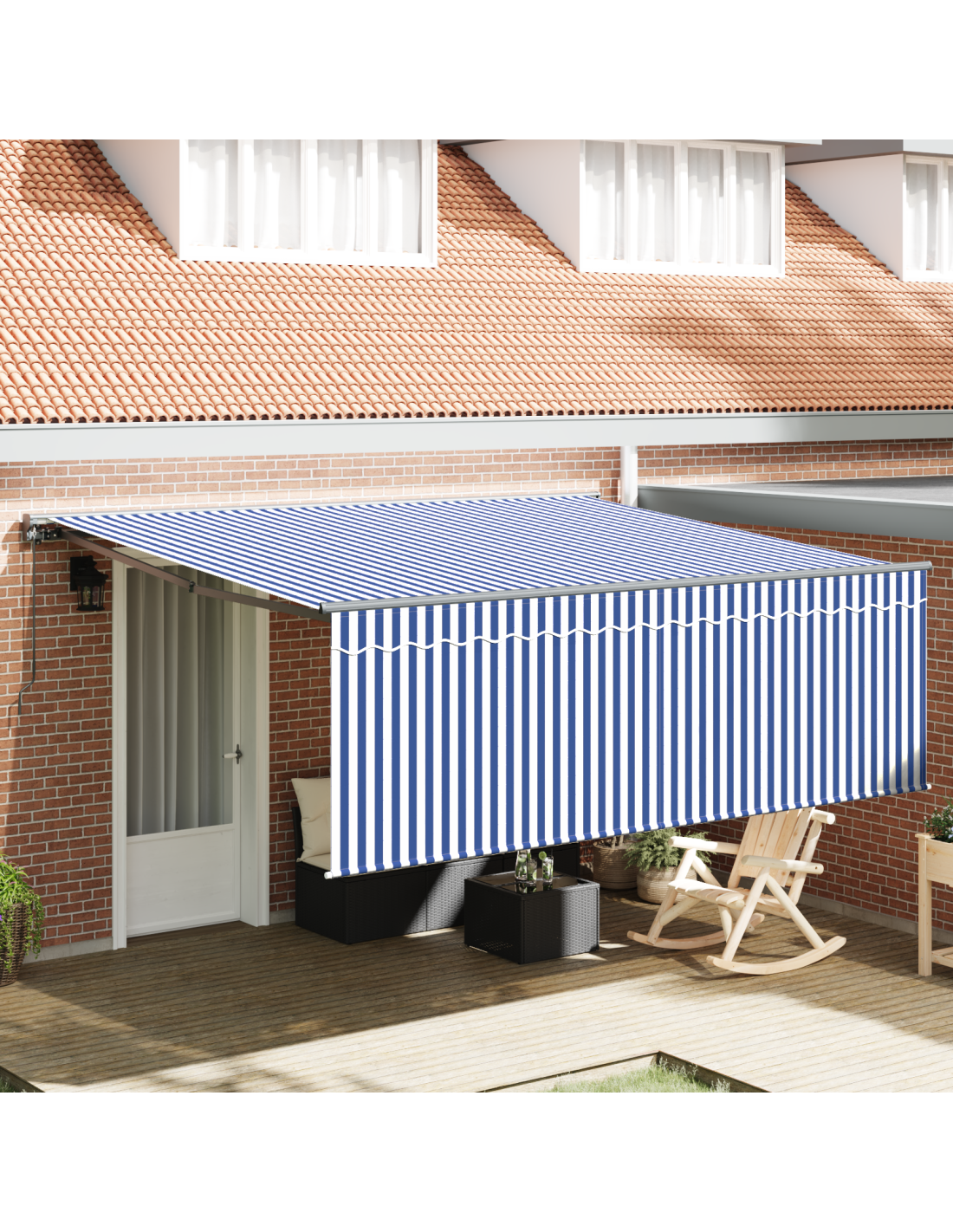 Questo ombrellone retrattile è una fantastica soluzione per stare all'ombra nei giardini e sulle terrazze. Unisce stile, semplicità e funzionalità con linee pulite e design minimalista, rendendolo perfetto per gli spazi esterni moderni. Con la sua combinazione elegante di blu e bianco, arricchisce ogni ambiente esterno, offrendo comfort e protezione dalla pioggia e dal sole. La funzione retrattile permette di scegliere quanto sole o ombra desiderare, rendendo l'uso all'aperto molto versatile.