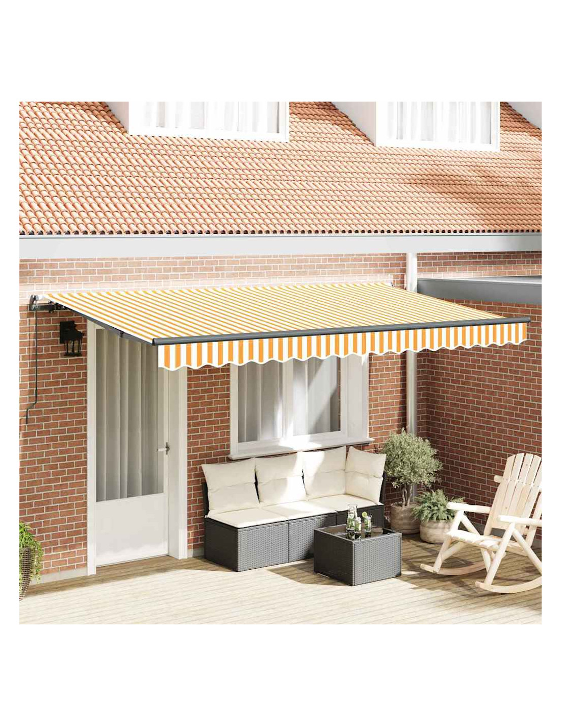 Questa moderna tenda retrattile è perfetta per giardini e terrazze. Unisce stile e funzionalità, con un design elegante e rigato che offre ombra dai raggi solari in estate.