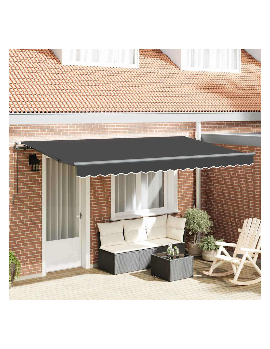 Questa moderna tenda retrattile è perfetta per giardini e terrazze. Unisce stile e funzionalità, con un design elegante e rigato che offre ombra dai raggi solari in estate.