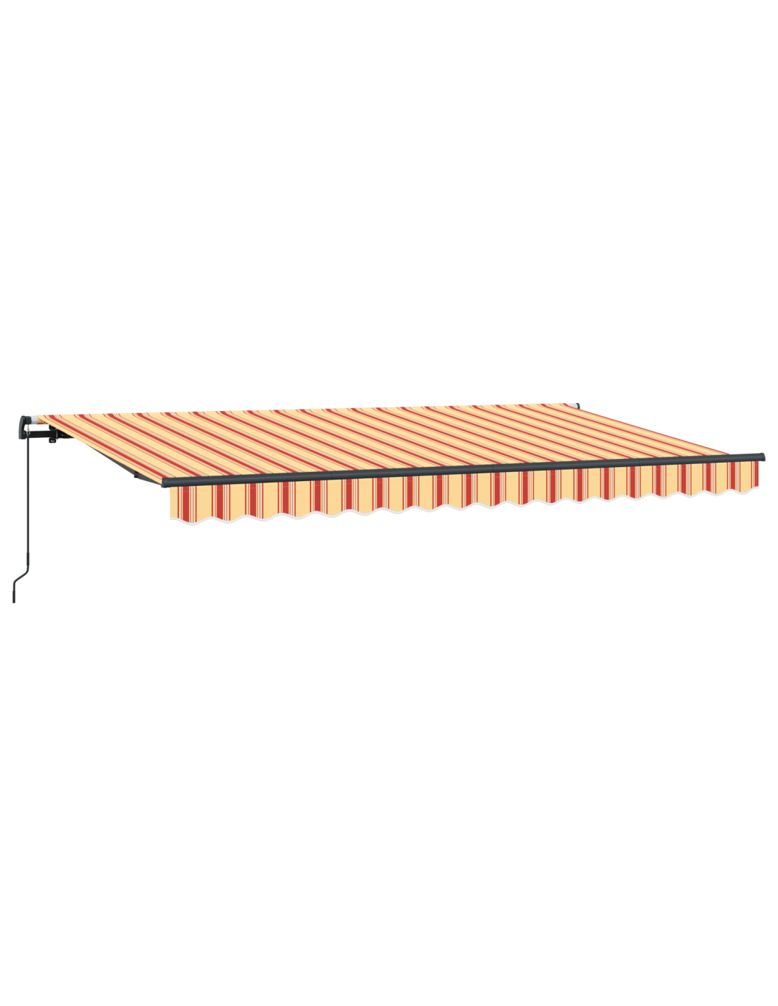 Questa moderna tenda retrattile è perfetta per giardini e terrazze. Unisce stile e funzionalità, con un design elegante e rigato che offre ombra dai raggi solari in estate.