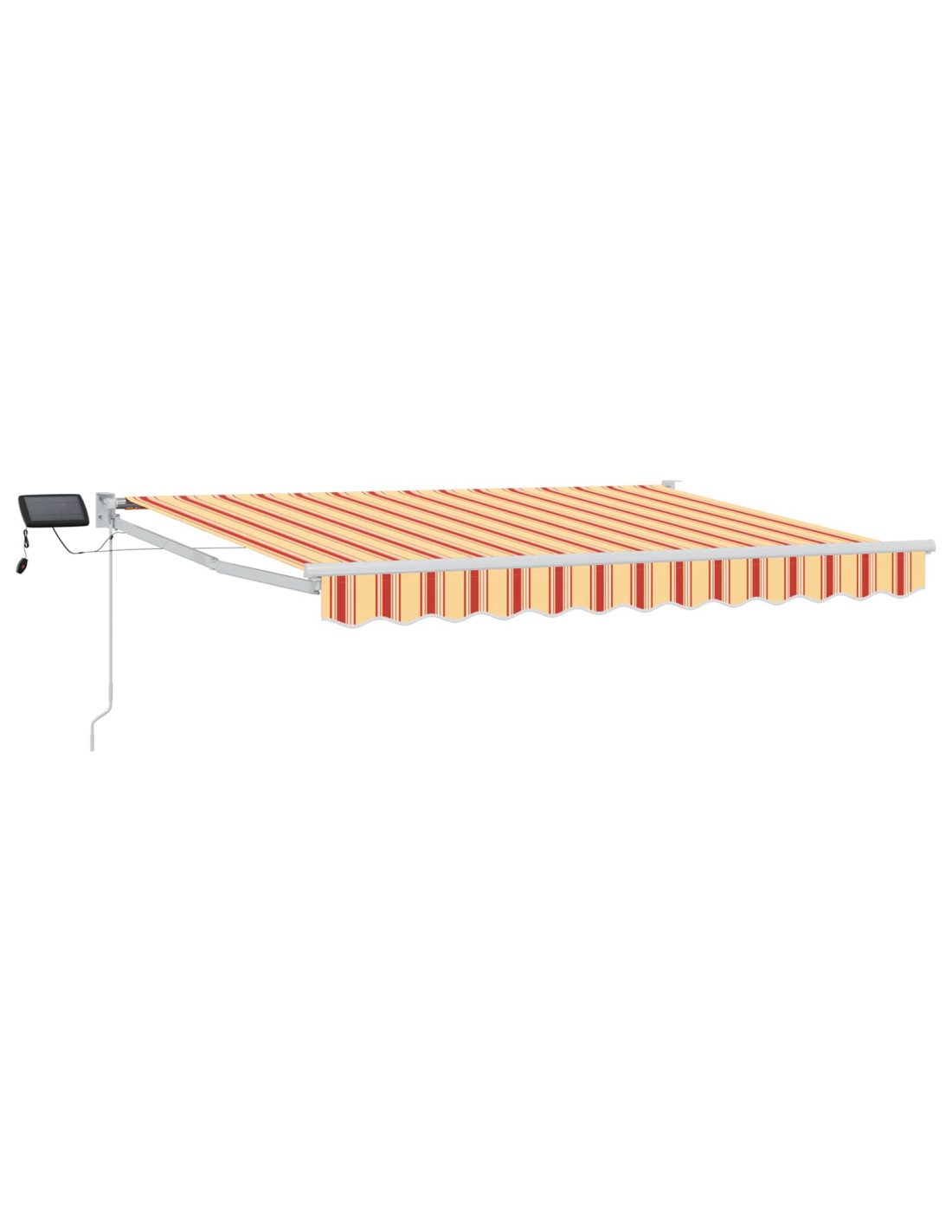 Questo tendone esterno con luci LED solari dà ombra e illuminazione per patii e terrazze. Grazie al suo design retrattile, puoi regolare la copertura dal sole come vuoi. Le luci LED si caricano durante il giorno e forniscono luce di sera, senza bisogno di una presa. Tessuto resistente all'acqua: Realizzato in poliestere con rivestimento in PU, è fatto per resistere a sole e pioggia. Ottimo per un uso esterno regolare, dà ombra in qualsiasi condizione. Struttura robusta: Il telaio in acciaio verniciato a polvere e alluminio offre una base solida. Resistente alla corrosione, mantiene stabile il tendone durante l'uso quotidiano. Funzionamento manuale: Puoi estendere o ritirare il tendone manualmente grazie alla maniglia a manovella. La struttura montata a muro permette di regolare l'area d'ombra secondo la luce solare. Illuminazione LED solare: Le luci LED si ricaricano durante il giorno, fornendo una luce base all'esterno la sera. Questo ti permette di avere un'illuminazione senza bisogno di una fonte di energia esterna. Componenti di montaggio: Include tutto il materiale necessario per l'installazione. Segui le istruzioni fornite per montarlo facilmente e in sicurezza.
