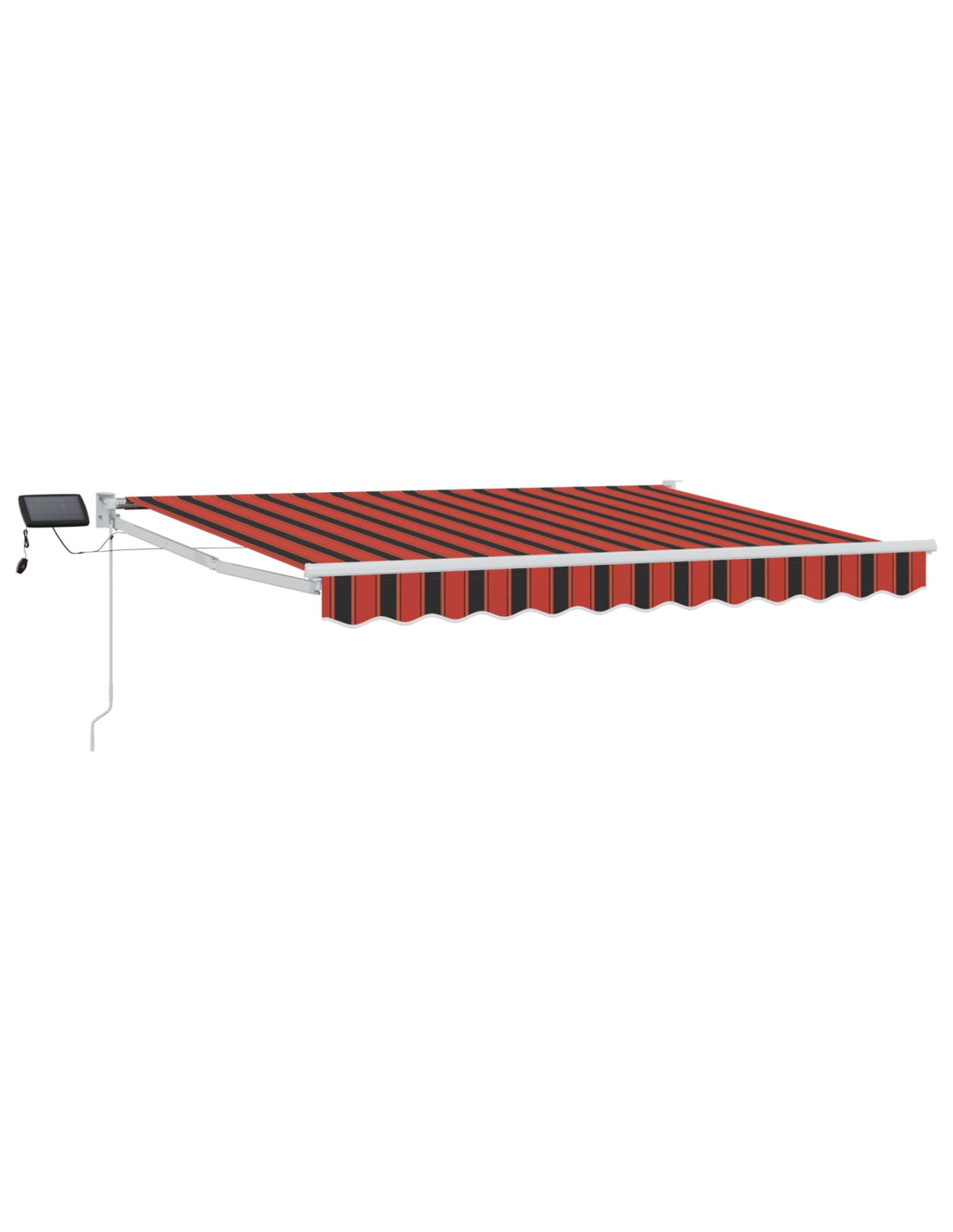Questo tendone esterno con luci LED solari dà ombra e illuminazione per patii e terrazze. Grazie al suo design retrattile, puoi regolare la copertura dal sole come vuoi. Le luci LED si caricano durante il giorno e forniscono luce di sera, senza bisogno di una presa. Tessuto resistente all'acqua: Realizzato in poliestere con rivestimento in PU, è fatto per resistere a sole e pioggia. Ottimo per un uso esterno regolare, dà ombra in qualsiasi condizione. Struttura robusta: Il telaio in acciaio verniciato a polvere e alluminio offre una base solida. Resistente alla corrosione, mantiene stabile il tendone durante l'uso quotidiano. Funzionamento manuale: Puoi estendere o ritirare il tendone manualmente grazie alla maniglia a manovella. La struttura montata a muro permette di regolare l'area d'ombra secondo la luce solare. Illuminazione LED solare: Le luci LED si ricaricano durante il giorno, fornendo una luce base all'esterno la sera. Questo ti permette di avere un'illuminazione senza bisogno di una fonte di energia esterna. Componenti di montaggio: Include tutto il materiale necessario per l'installazione. Segui le istruzioni fornite per montarlo facilmente e in sicurezza.
